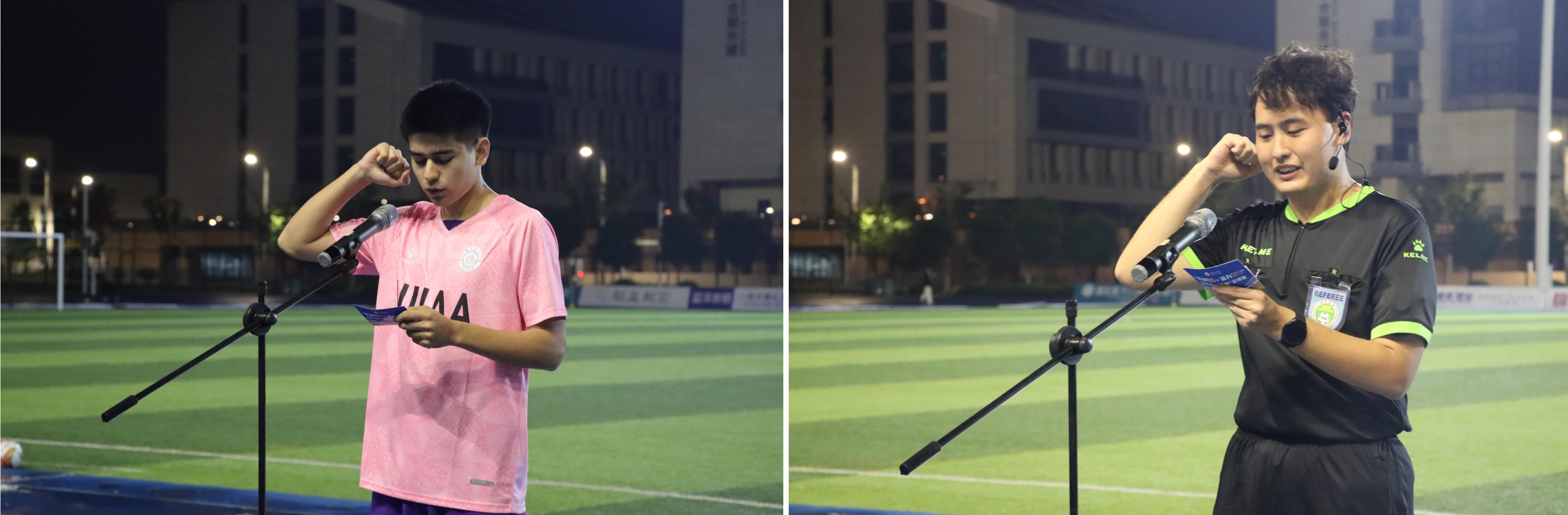周保辉代表体育部致开幕辞。他强调,牧星学院作为学校人才培养的“先行区”,高度重视体育育人工作,此次“跃动牧星·活力青年”足球赛,正是展现牧星学子蓬勃朝气、团队精神和体育风采的重要舞台,是书院文化“多元、融合、创新”的生动实践。最后,他预祝本届足球赛取得圆满成功。