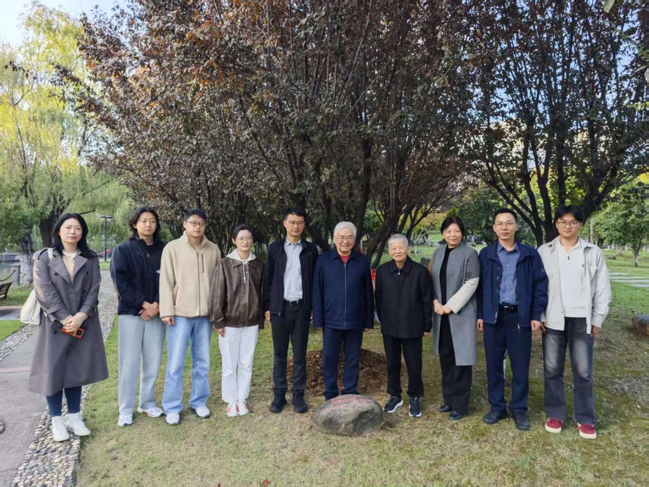 讲座结束后,郑纬民与师生代表共同在砚湖边院士林培土、围堰、浇水。