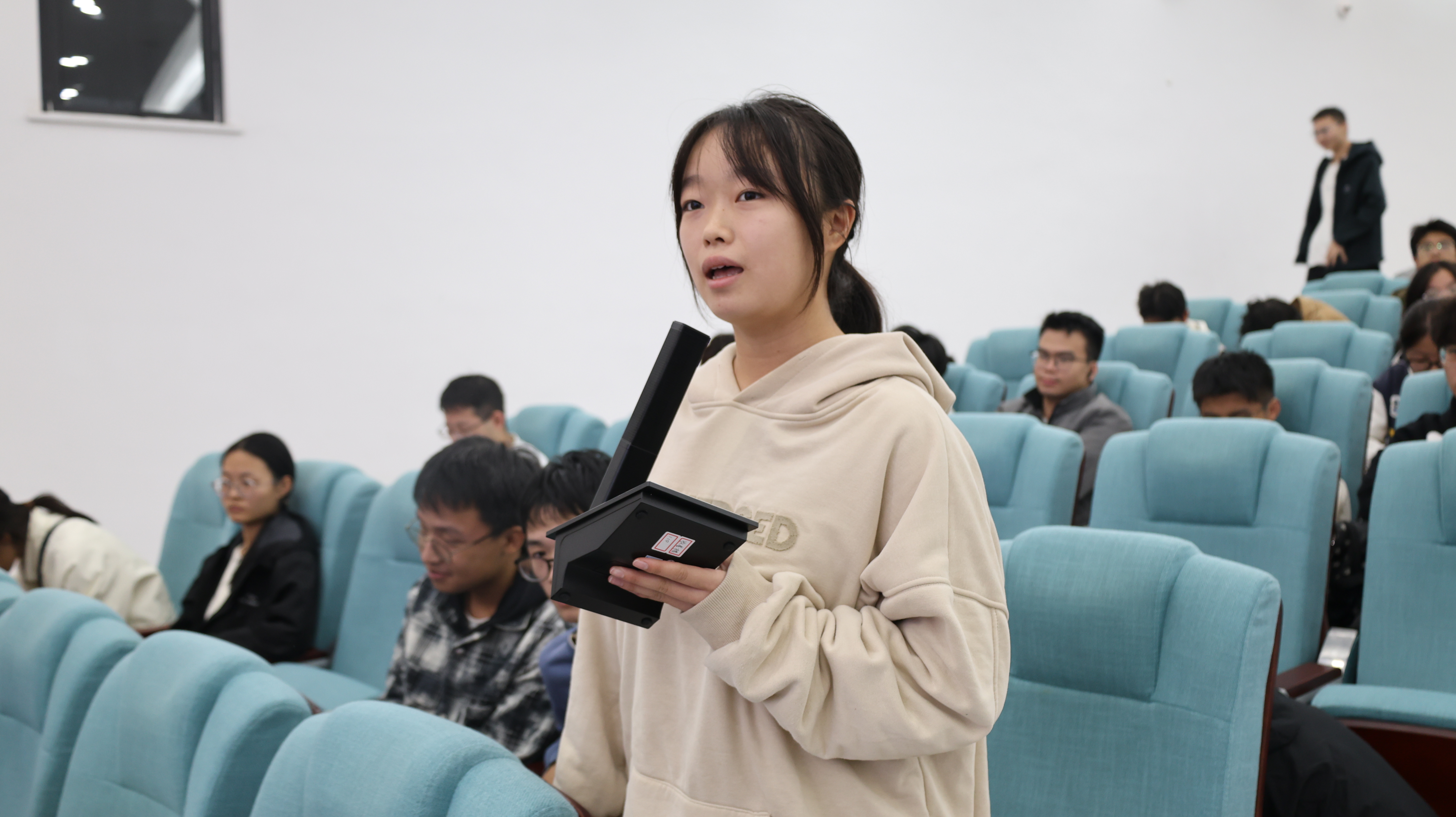 整场报告内容丰富、逻辑严谨、语言生动,既有理论高度,又紧密联系实际,现场掌声不断,气氛热烈。在互动环节,同学们踊跃提问,就AI与专业学习结合、创新思维训练方法等话题与殷教授进行了深入交流,殷教授一一给予了细致解答,令在场同学受益匪浅。