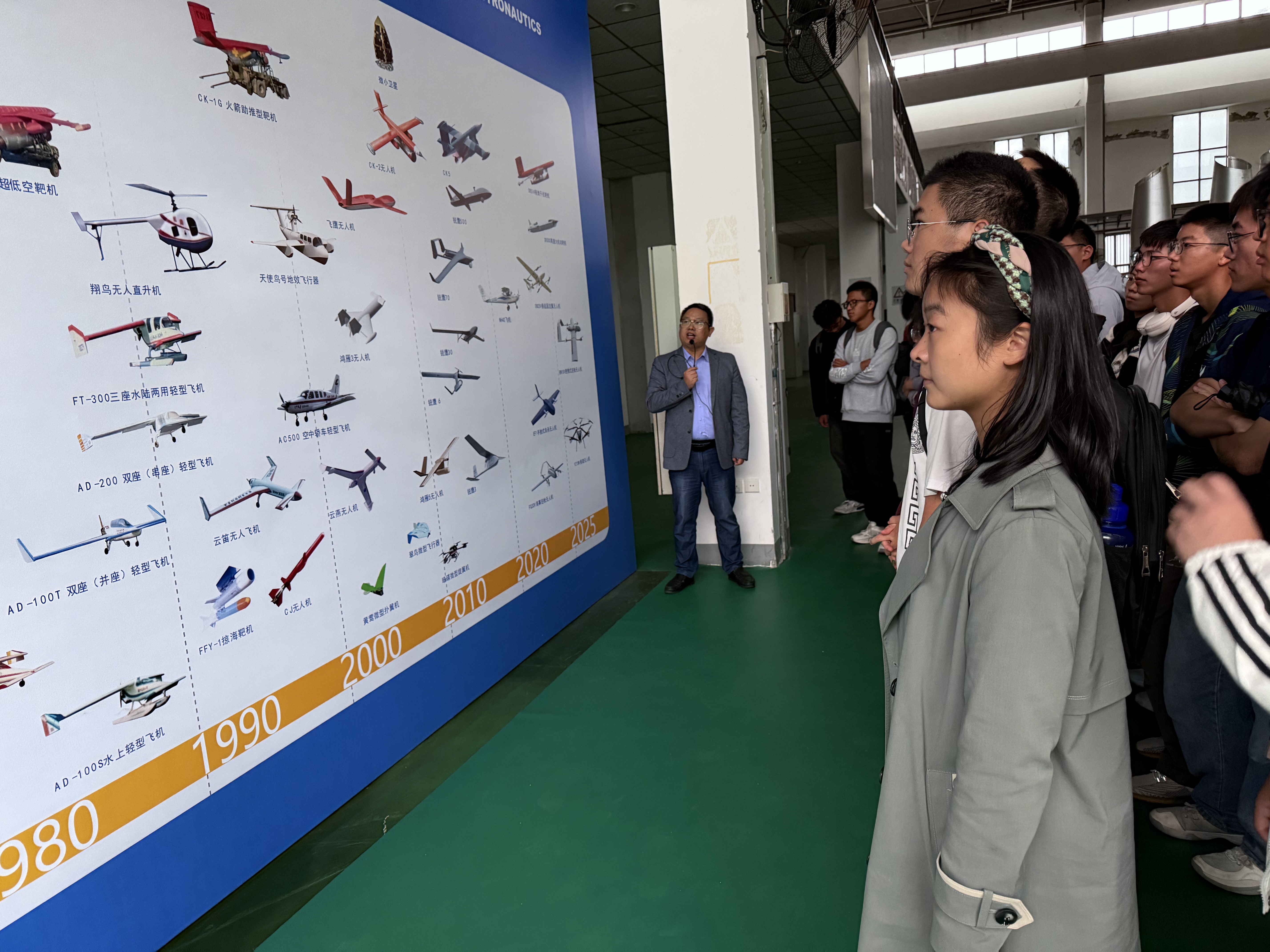 在参观无人机研究院时,副院长杨波和曹广州老师带领同学们学习学校无人机诞生的历史,并开启了技术探索的尝试,学生学习了发动机原理、参观测试间、体验操作室的工作等,让新生切实感受到几十年如一日的坚持。从长空一号大型无人靶机在国内无人机领域的一骑绝尘,到云笛无人机的决胜高原,再到锐鹰500、CK300的非凡超越,一代代南航人用行动践行着“智周万物,道济天下”的校训,激励着新生砥砺奋斗。