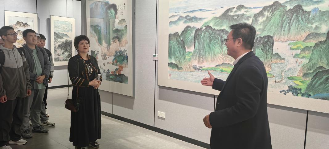 南京航空航天大学艺术学院院长板俊荣表示,学校高度重视美育工作,晚课期间组织学生现场观展,让课堂理论与画作实践深度结合,助力学生提升审美感知与艺术素养。