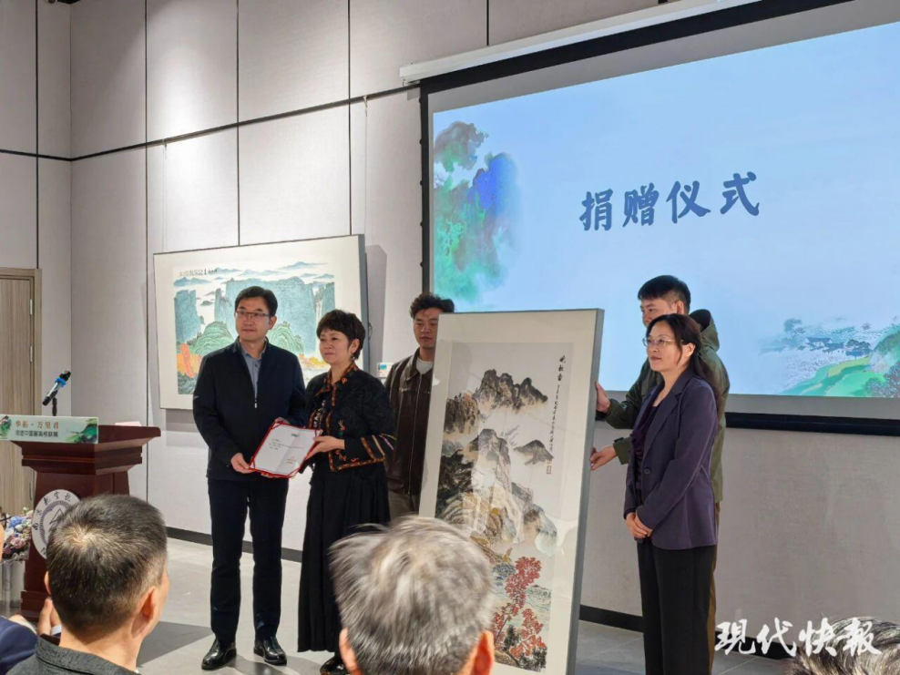 万里君在开幕式现场向南航捐赠了一幅《晚秋图》作品。此次捐赠既是她对南航重视美育、传承文化的认可,也为学校的文化育人体系注入了珍贵的艺术养分,让师生能更直观地感受传统中国画的魅力。南航工会主席石勇、艺术学院党委书记张钟勤代表学校接收了捐赠。