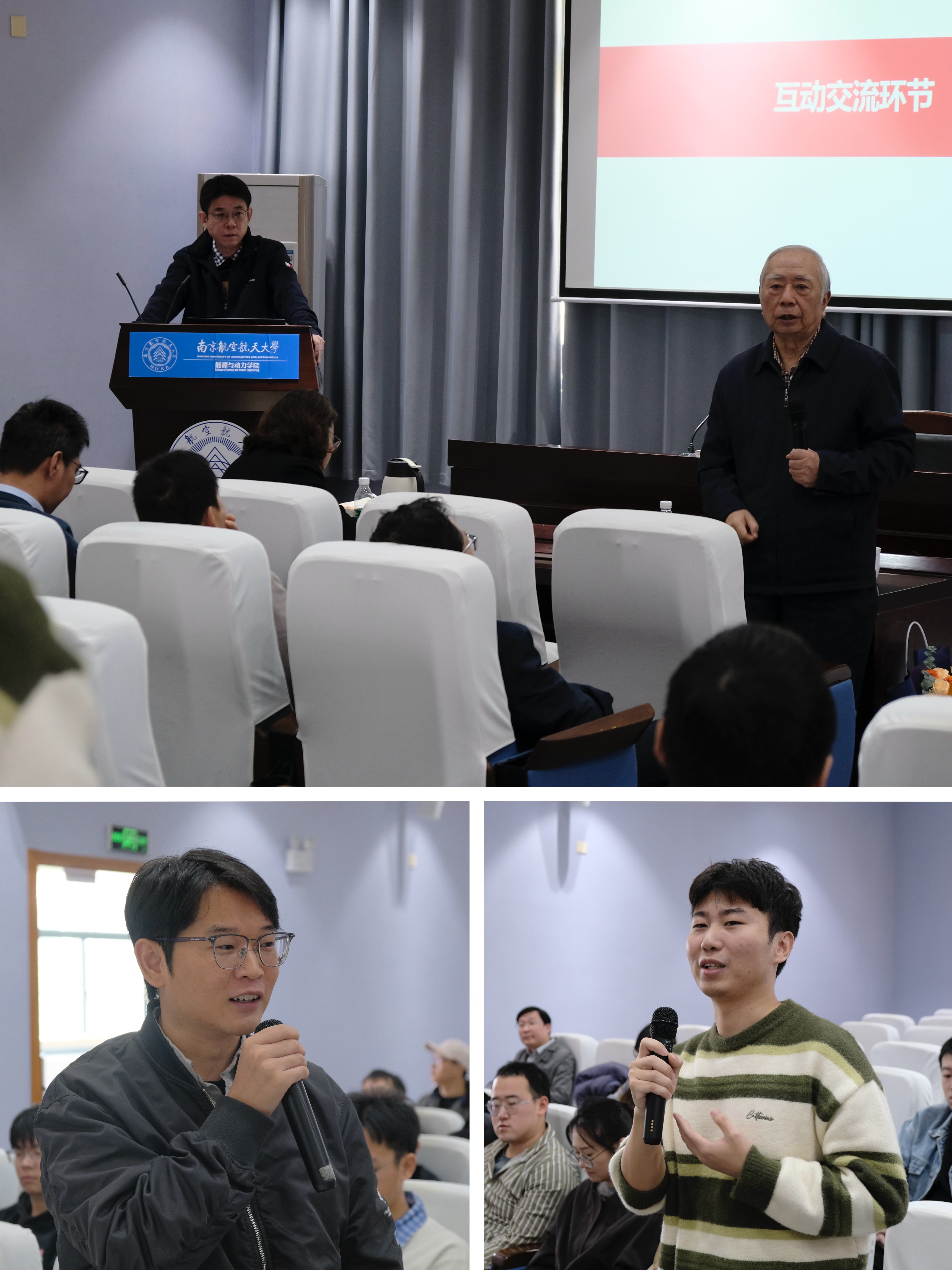 讲座结束后进入互动环节。围绕青年教师“如何平衡科研与教学”以及研究生“航空发动机结构设计者应具备哪些品质”等问题,高老师指出:“教师应以身作则,实现教学与科研相互促进;学生则应注重实践、拓宽视野、坚守严谨。”他的回答务实而深刻,使师生深受启发。