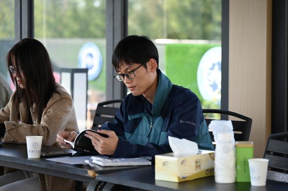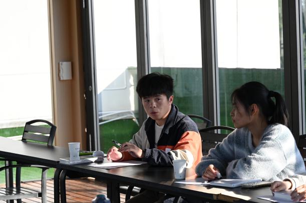 分享环节中,师生围绕议题各抒己见,结合自身成长阅历与阅读感悟展开热烈交流。有同学提到,《活着》不仅是一部个人苦难史,更是 20 世纪上半叶普通百姓的“时代纪录片”,书中对生存困境的真实刻画,让自己深刻体会到当下美好生活的来之不易,也明白“每一代人都需勇敢面对生活之痛”;也有同学以霜降节气的寓意作比,认为福贵的人生就像“被霜打过的土地”,看似荒芜却暗藏无法被摧毁的生命韧性,而这种“认清生活真相后依然热爱生活”的态度,正是“向死而生”勇气的最好诠释。王曦在交流中也结合自身经历,鼓励同学们在学业与生活中遇到困境时,借鉴福贵“为活着本身而活着”的信念,不被外在得失裹挟,坚守内心的力量。