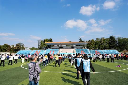 赛前,在专业教练的带领下,全体参赛者伴着动感音乐进行了充分热身。现场气氛活跃,大家舒展身体,为比赛做好了准备。