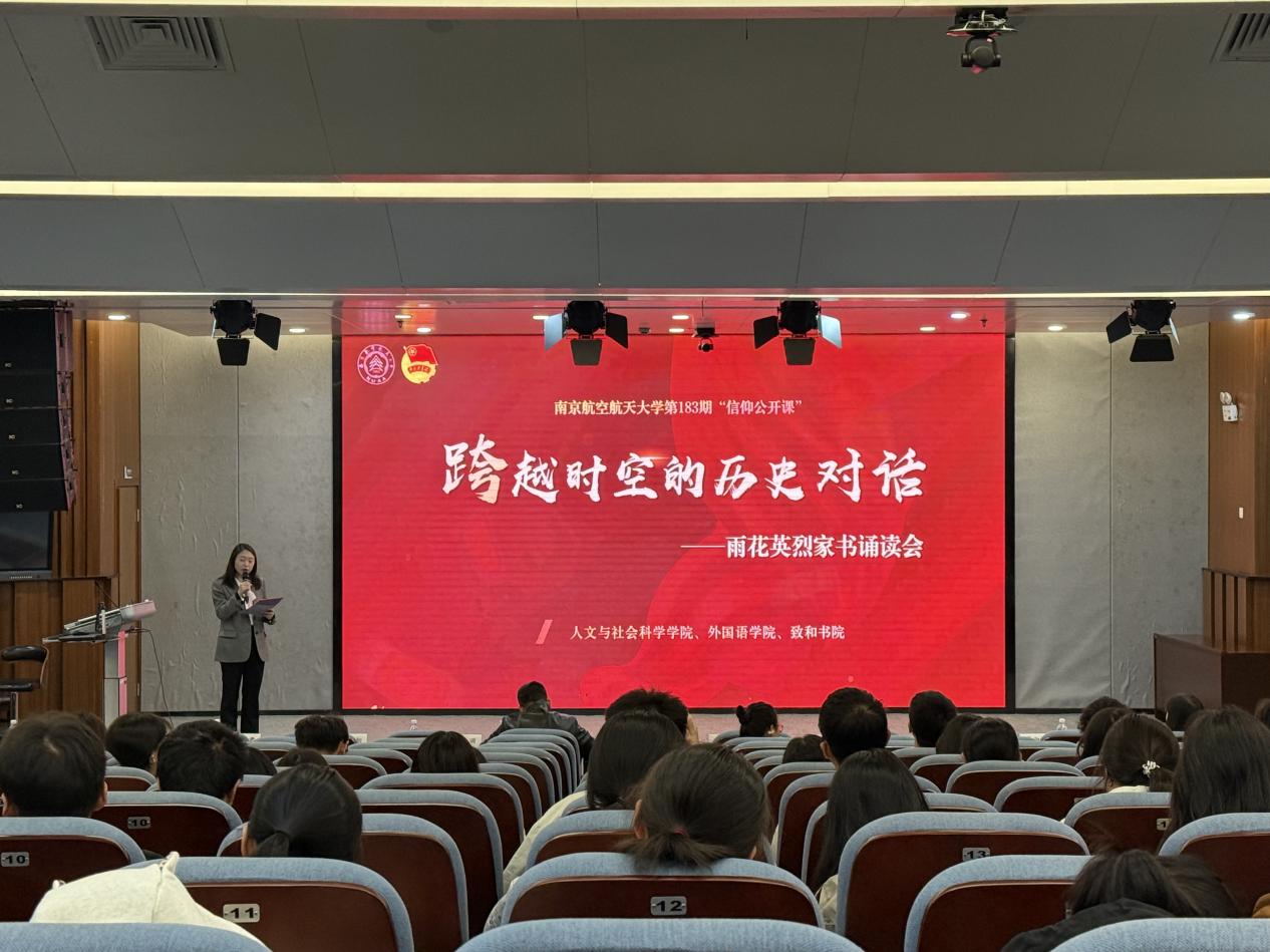 为深入传承红色基因,赓续雨花英烈精神,筑牢青年学子的信仰根基,10月23日上午,由校团委主办,人文与社会科学学院、外国语学院、致和书院联合承办的“跨越时空的历史对话——雨花英烈家书诵读会”信仰公开课,在天目湖校区巡天楼一楼报告厅举行。雨花台烈士陵园管理局党性教育处党支部书记、副处长孙静静,党性教育处教师杨柳担任主讲人,近二百名师生现场参与,共同开启一场与英烈跨越时空的精神对话。