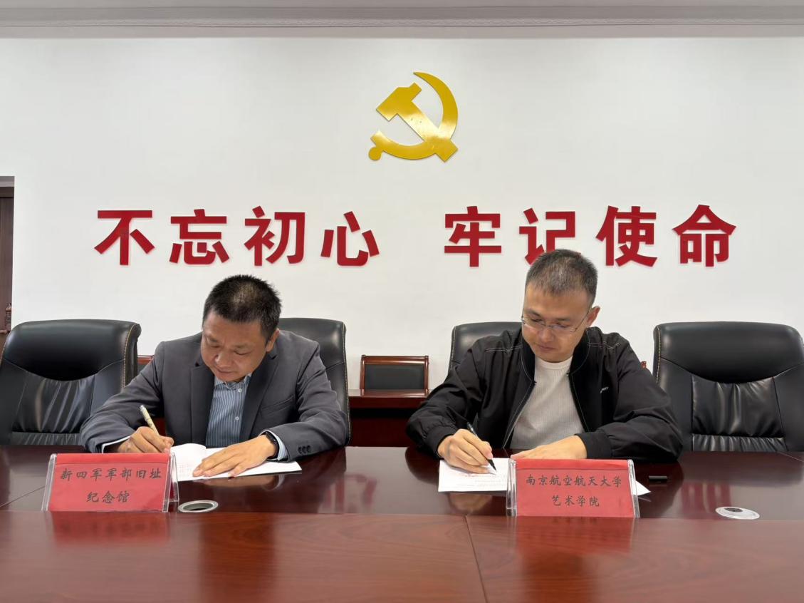 双方还签署了《共建爱国主义教育基地协议》,并为“南京航空航天大学艺术学院爱国主义教育基地”揭牌。后续,纪念馆将为艺术学院师生开展党史学习、革命传统教育、艺术采风与创作提供丰富的教育资源与平台支持;双方将在主题党日活动、美育实践、文创产品研发等多个方面展开更深层次的探讨与合作,共同为培养担当民族复兴大任的时代新人贡献力量。