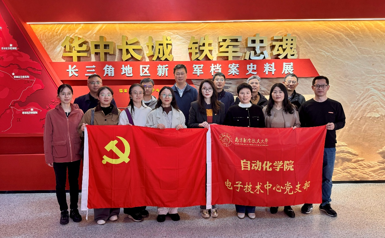 10月28日,为深入学习贯彻习近平新时代中国特色社会主义思想,纪念中国人民抗日战争暨世界反法西斯战争胜利80周年,南京航空航天大学自动化学院电子技术中心党支部组织教师团队赴江苏省档案馆参观“华中长城,铁军忠魂——长三角地区新四军档案史料展”。自动化学院党委副书记阙愚、电子中心党支部书记田祥瑞及教师代表共14人参加活动。
