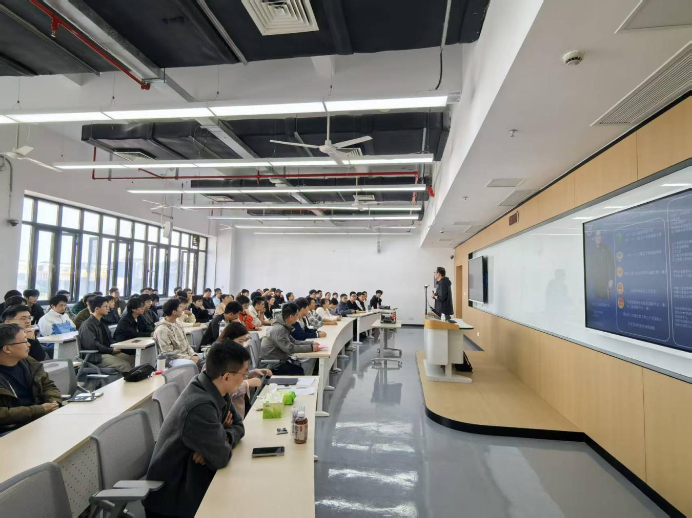 方文墨以《从文墨精度到大国工匠》为题,生动幽默地讲述了他从技校学徒成长为航空工业首席技能专家的奋斗历程,探讨了新时代技术工人的职业发展路径与在航空装备制造中的关键作用。他说:“我们打磨的不是零件,而是国家腾飞的翅膀。”这句平实却有力的话,让现场师生深受触动。