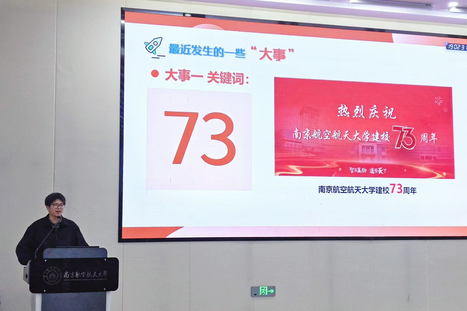 首先,杨耀勇结合近期发生的校庆、评优评奖季等“热点大事”与同学们展开交流,通过互动问答等方式,鼓励同学们传承校风校训精神,抒发爱校荣校情怀,扎实打牢专业基础,锚定生涯目标,全面提升自我。接着,他围绕预防流感、防范诈骗等话题送上“暖心提醒”,叮嘱同学们做好健康防护,以良好的身体状态投入学习生活,着重强调“不轻信、不透露、不转账、多核实”的防骗原则,呼吁同学们时刻保持警惕心。