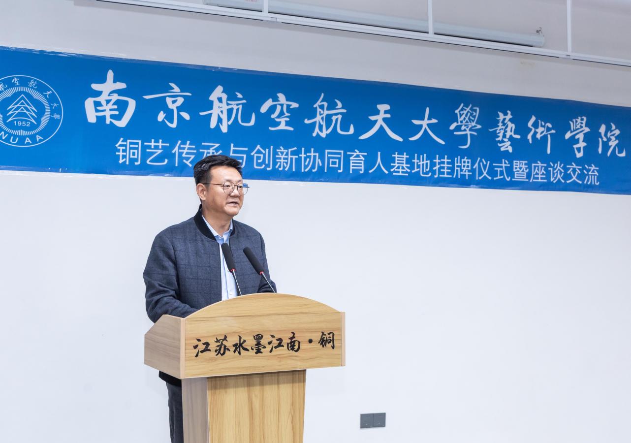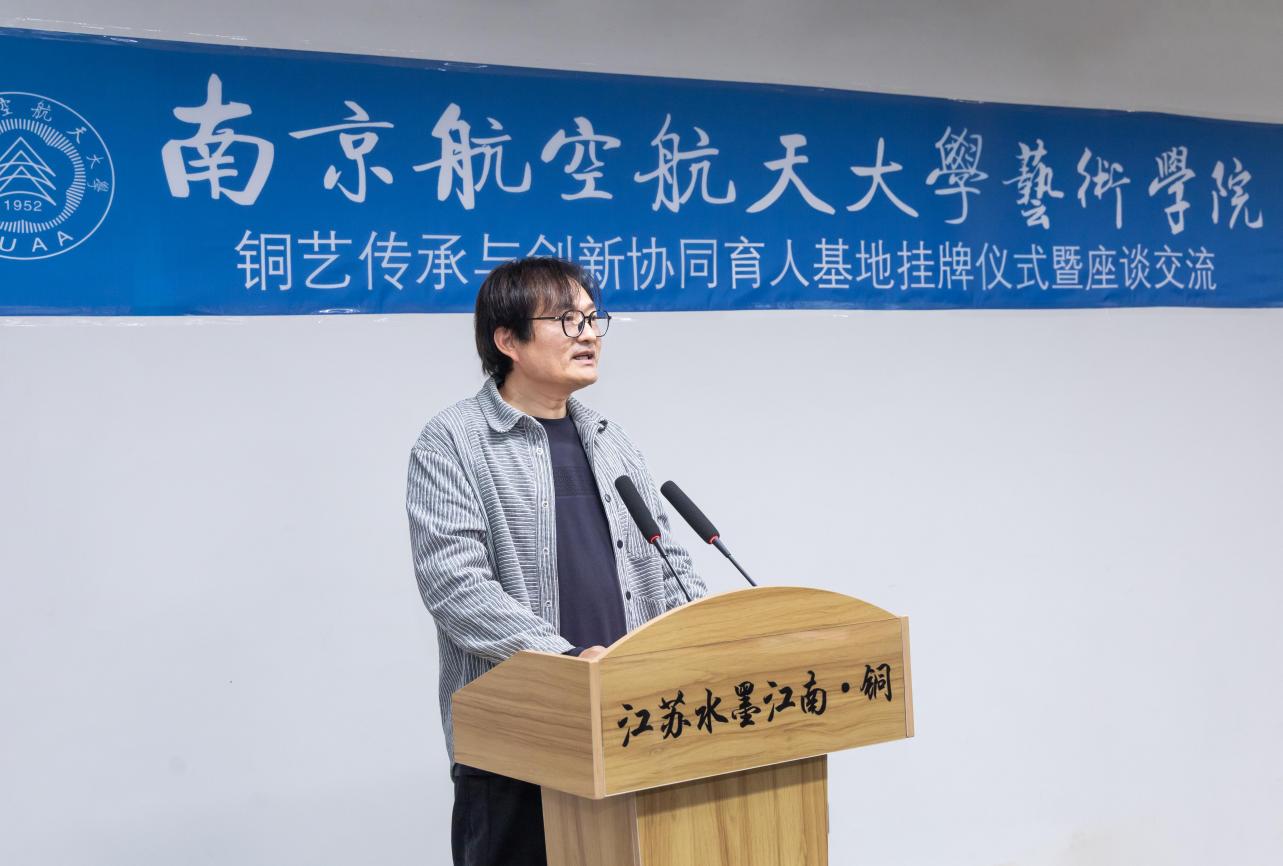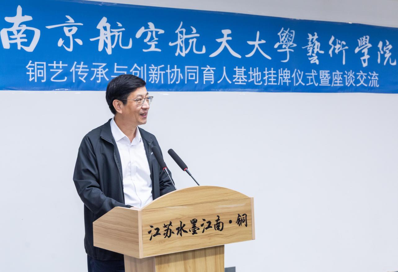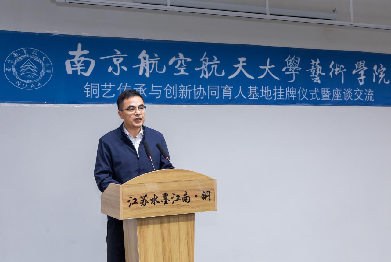 10月30日下午,南京航空航天大学艺术学院与江苏水墨江南铜艺术馆在溧阳共同举行“铜艺传承与创新协同育人基地”挂牌仪式暨座谈交流会。溧阳市文联主席沈佳宾与古县街道党工委副书记、办事处主任管文彪、市民间文艺家协会、市美术家协会艺术家代表、江苏水墨江南园林景观工程有限公司董事长王光超、江苏水墨江南设计总监、常州大学硕士生导师朱惠娟、艺术学院领导班子参加会议。