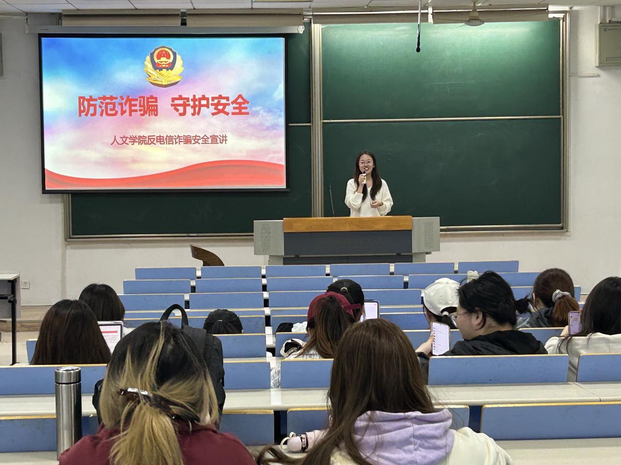 为进一步增强同学们的防诈骗意识,提高同学们对电信网络诈骗的认识,10月30日,人文与社会科学学院开展“防范诈骗,守护安全”专题月讲评,邀请保卫处将军路校区保卫办主任李广主讲,月讲评由辅导员聂小芳主持。