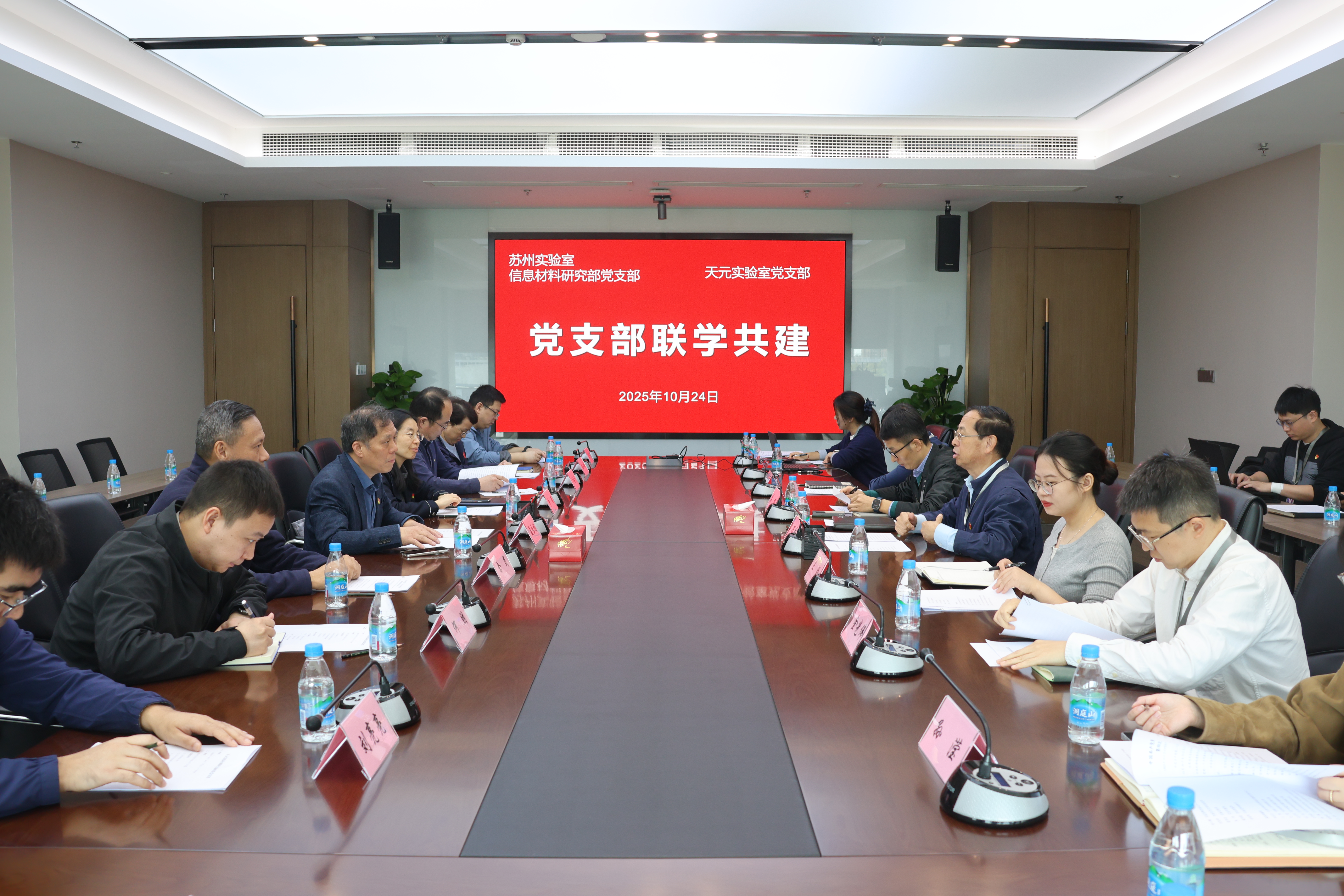 上午,天元实验室党支部一行来到苏州实验室,与苏州实验室信息材料研究部党支部开展联学共建交流会。会议由苏州实验室信息材料研究部部长兼党支部书记陈弘达主持,天元实验室党支部书记聂东林致辞,苏州实验室信息材料研究部党支部组织委员杨赢带领全体人员学习了《中国共产党二十届中央委员会第四次全体会议公报》。接着,双方就学习体会、创新机制、人才引进、信息化建设及领域合作等方面进行了深入交流,达成了共识。