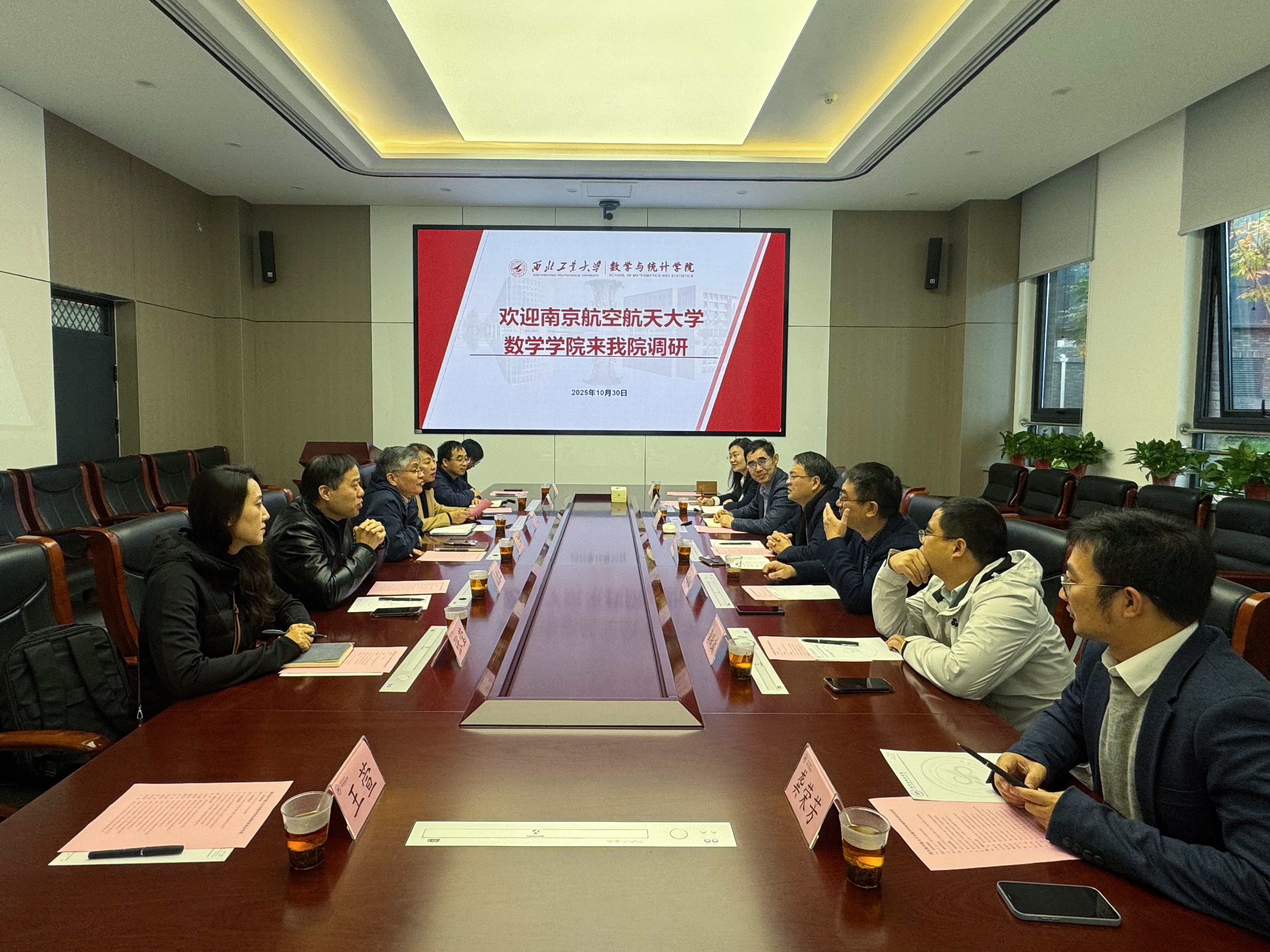 10月30日上午,调研组首站访问西北工业大学数学与统计学院,学院党委书记王莉、院长聂玉峰等领导参加交流。聂玉峰从学科建设、师资队伍、人才培养、科学研究、国际合作与交流等关键维度,系统介绍了学院的创新实践路径和标志性发展成果。王莉聚焦党建引领发展主线,分享了将党建工作深度融入学院治理、师资队伍建设与人才培养全过程的特色做法与宝贵经验。双方围绕拔尖创新人才培养、校友资源联动、国际化办学拓展和高水平师资引育等议题进行了深入研讨。