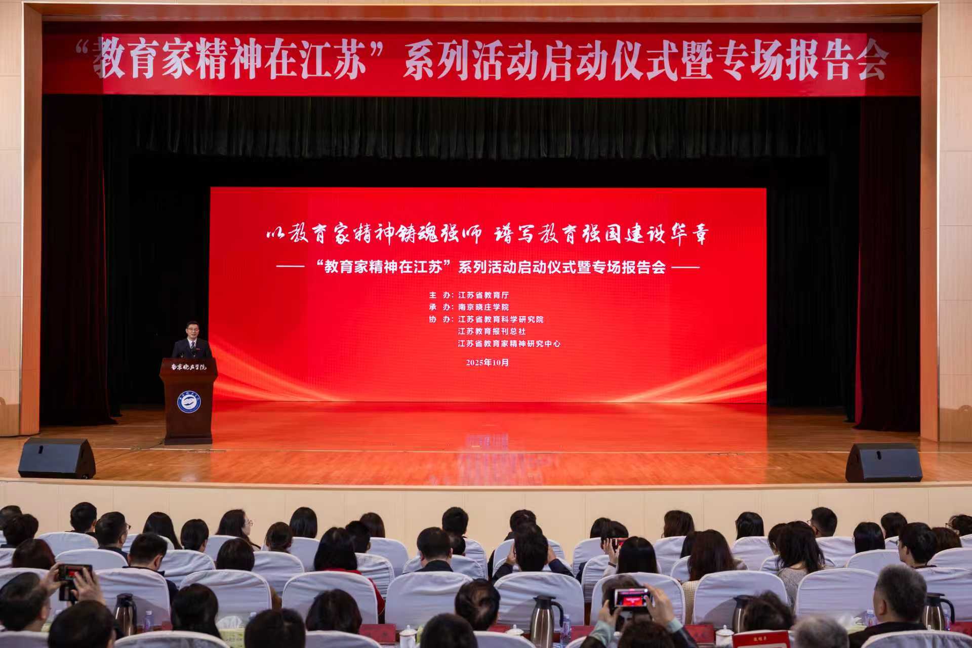 为深入学习贯彻习近平总书记关于大力弘扬教育家精神的重要指示精神,引导广大教师将教育家精神转化为思想自觉、行动自觉,10月31日,由江苏省教育厅主办,南京晓庄学院承办,江苏省教育科学研究院、江苏教育报刊总社、江苏省教育家精神研究中心协办的“教育家精神在江苏”系列活动启动仪式暨专场报告会在南京晓庄学院举行。