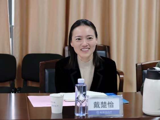 许静对戴楚怡一行的到访表示热烈欢迎,并系统介绍了学院党建工作的思路与实践成效。她表示,希望以此次交流为契机,进一步推动两院在党建与业务工作上的深度融合与协同发展。戴楚怡也分享了江苏科技大学能动学院在党建引领、师生党支部建设等方面的积极探索与成果。
