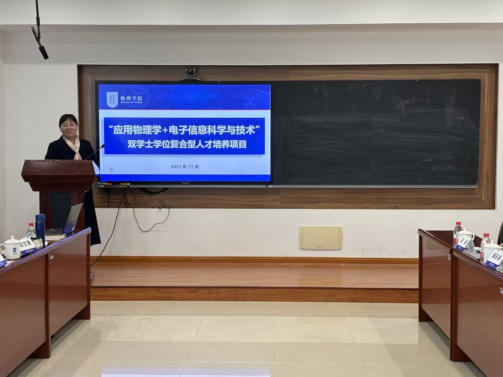 调研会上,阚彩侠首先对南京理工大学物理学院同仁的到来表示热烈欢迎,并重点分享了我院“应用物理学+电子信息科学与技术”双学士学位项目申报与实施的经验,包括项目申报流程、培养方案制定、课程体系构建、师资队伍建设、项目管理办法等关键环节。双方围绕双学士学位项目的必要性、可行性展开深入探讨交流,内容涉及专业匹配度的科学考量、跨学科课程体系的优化整合、学生管理模式的协同创新等。双学士学位项目是培养复合型人才的重要途径,作为兄弟高校,希望双方能充分发挥各自学科优势,探索建立特色鲜明的人才培养模式。