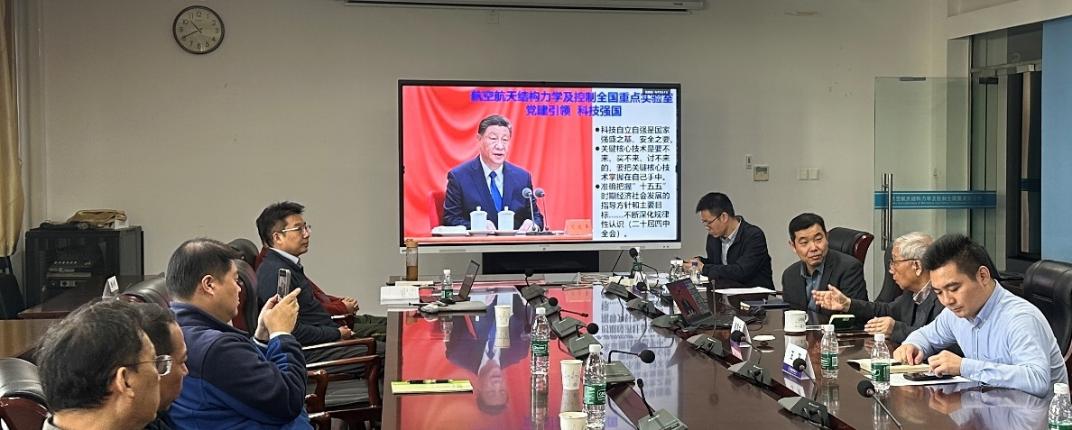 11月3日上午,航空航天结构力学及控制全国重点实验室(力学全重)举办“党建引领,科技强国”专题会议,力学全重机关与赵淳生院士团队深入学习贯彻党的二十届四中全会精神,聚焦科技创新与学科发展。会议特邀中共二十大代表、校党委常委、宣传部部长徐川做专题辅导报告,宣讲党的二十届四中全会关于科技强国的精神。中国科学院院士赵淳生、航空学院院长魏小辉、力学全重常务副主任汪俊、科研院综合处副处长王云平、力学全重副主任王亮以及力学全重机关、赵淳生院士团队科研骨干等30余人参会。赵淳生院士亲自组织、策划并主持了此次“党建引领,科技强国”专题研讨会,旨在深入学习贯彻党的二十届四中全会精神,凝聚共识、汇聚力量,以高质量党建引领科技创新高质量发展,奋力谱写科技强国建设新篇章。航空学院院长魏小辉教授围绕科技强国与赵淳生院士团队的十五五发展规划做了重点发言,科研院综合处副处长王云平重点介绍了赵淳生院士团队牵头的蟠龙精密驱动实验室重组过程与实验室“十五五”的方向发展规划,力学全重常务副主任汪俊介绍了力学全重在动力学与控制方向的“十五五”发展规划与建议,赵淳生院士团队的骨干教师现场作了参会交流。