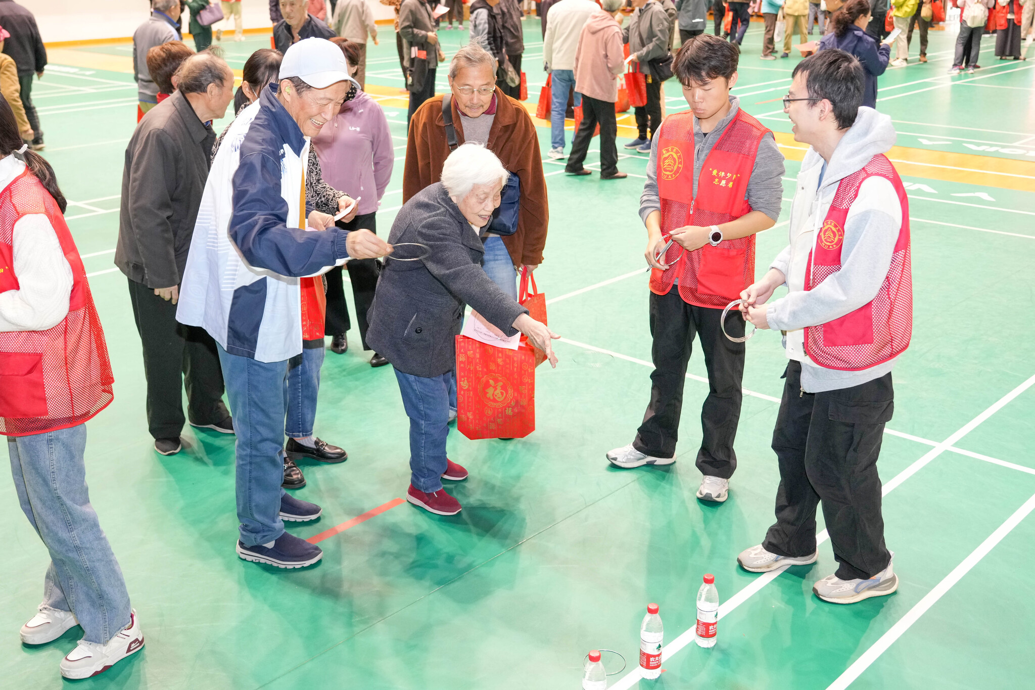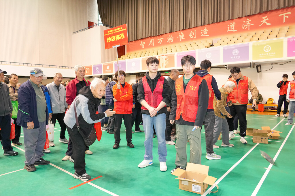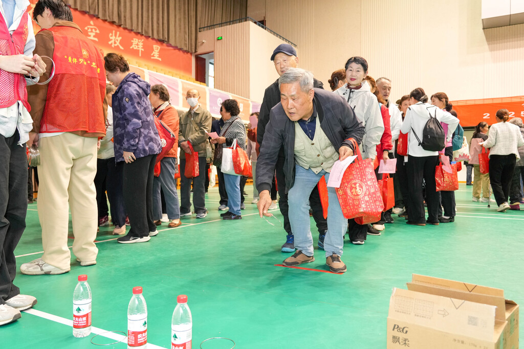 本次游艺活动设置了老同志们喜闻乐见的传统游艺项目——弹球入盆、飞镖中彩、抛圈套物、沙袋掷准等。项目融挑战性、趣味性和娱乐性为一体,既考验技巧又充满乐趣。活动吸引了近400位老同志参与,现场秩序井然,欢笑声不断。百岁老人钱培根、96岁高龄的离休干部刘诗钰等高龄老同志也在家人的陪伴下,兴致勃勃地参加了游艺项目。许久未见的老同志们愉快交谈,共忆奋斗岁月,展望美好生活。