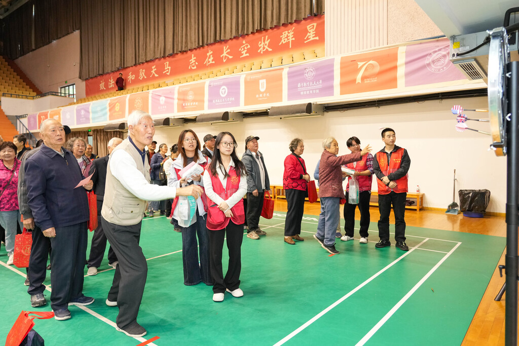 11月5日,“银龄展活力 金秋享健康”离退休教职工游艺活动在明故宫校区体育馆举办。校党委常委、组织部部长王晖,我校老体协理事长、原副校长袁川耈,夕阳红艺术团团长王宜胜,老年大学常务副校长彭建华出席开幕式。