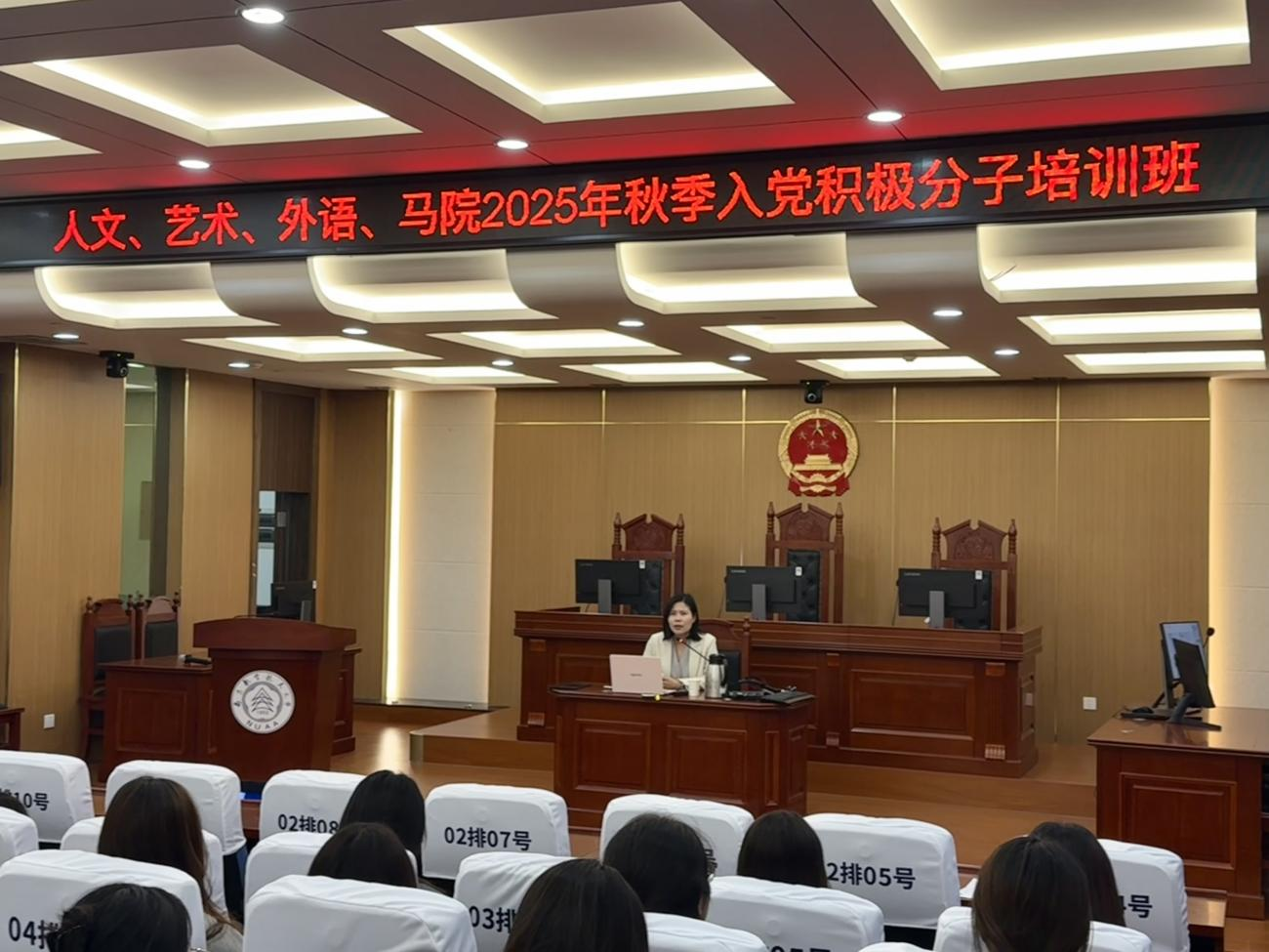 近日,马克思主义学院联合人文与社会科学学院、艺术学院、外国语学院共同开展2025年秋季学期党校培训。来自四个学院的150余名入党积极分子、预备党员参加培训。