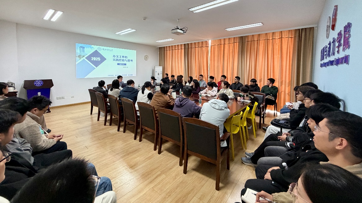 王洋以《办文工作的实践经验与思考》为题,从公文处理规范、常见公文写作方法、工作思考与体会三个层面系统展开。他结合大量真实案例,深入解析了通知、报告、请示、纪要等常用文体的写作逻辑与常见误区,并分享了个人写作中“多看、多思、多写、多改”的实用方法与资源积累经验。他强调,公文不仅代表单位意志,更体现工作作风,鼓励大家逐步构建属于自己的写作体系,实现从“完成文稿”到“打造精品”的跨越。