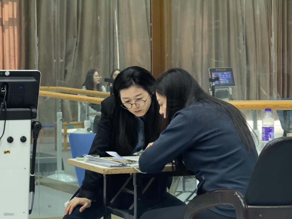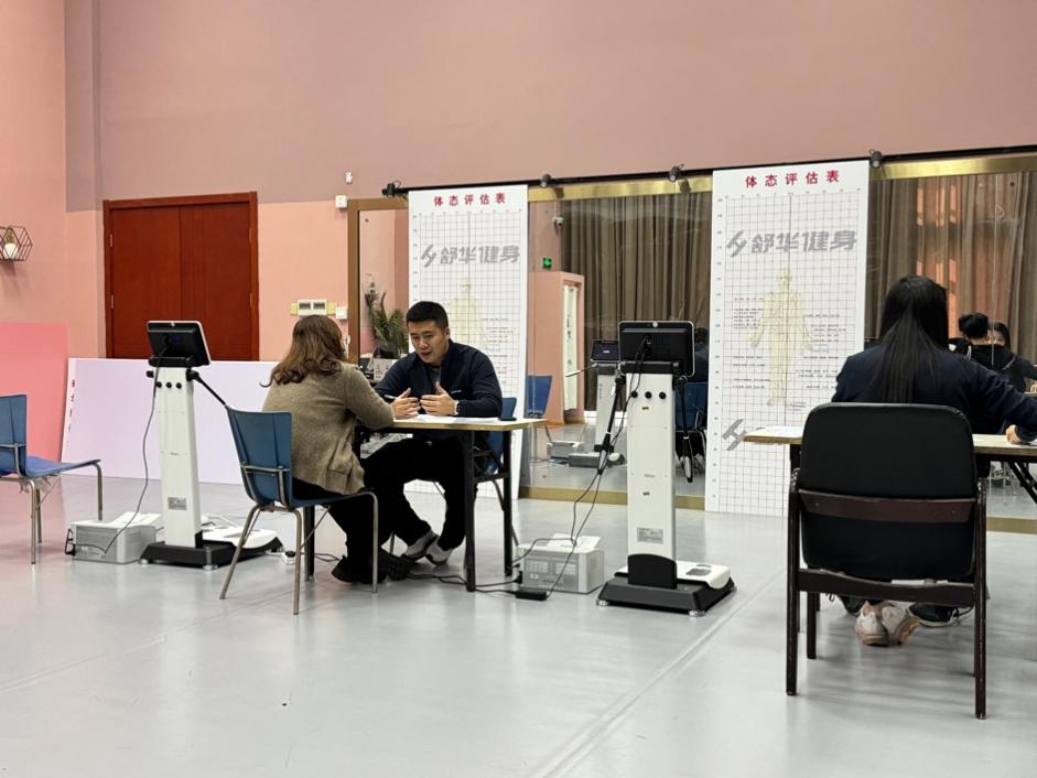 活动受到教职工热烈欢迎,报名通道一经开放即刻满额,三校区近两百名教职工分批次有序参与测试。活动现场设置两大核心环节:专业检测环节中,工作人员借助专业仪器精准采集各项体质数据,全面呈现教职工身体机能状况;咨询指导环节里,专业教练结合检测报告,一对一解读数据、答疑解惑,针对性提供饮食建议、运动方案及体态矫正指导,让每位参与者都能清晰掌握自身健康短板,获得科学的健身指引。
