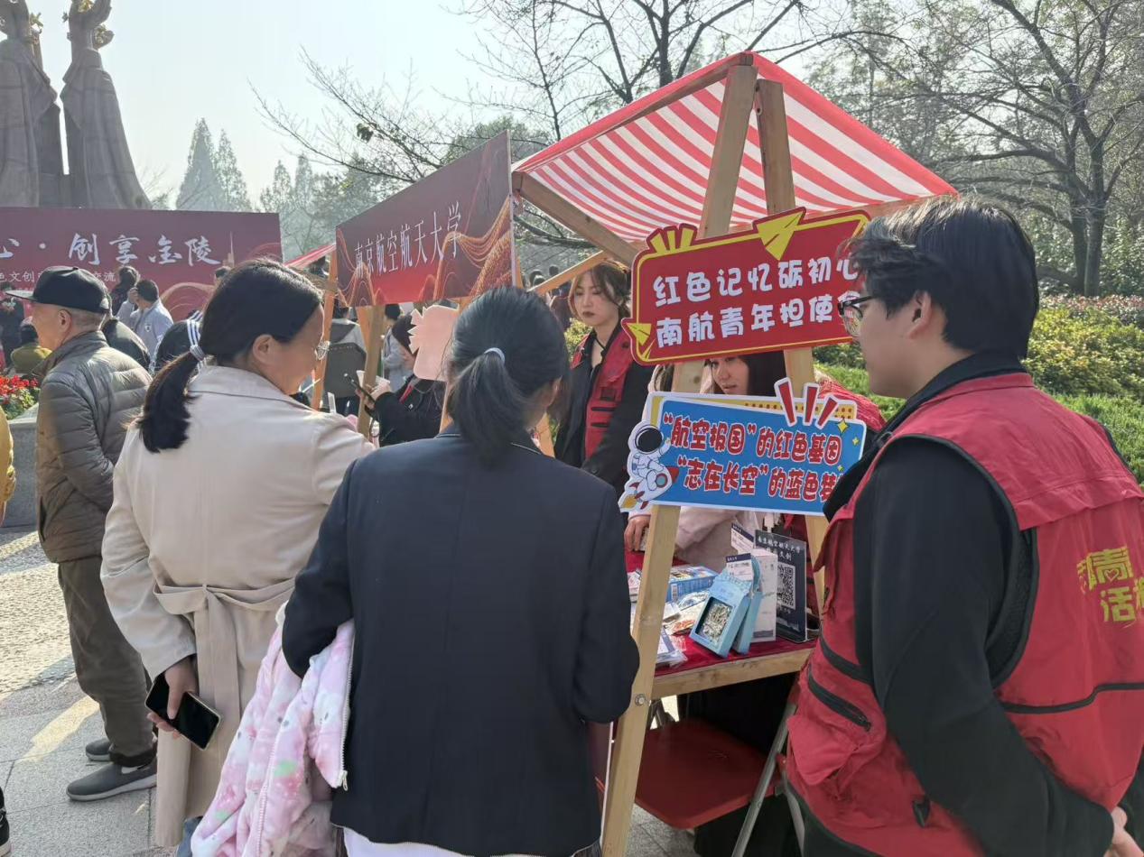 活动现场,我校展位前人头攒动、气氛热烈。“诞生于抗美援朝烽火之中的南航,与身俱来就怀揣着‘航空报国’的红色基因和‘志在长空’的蓝色梦想,肩负着航空强国、服务国防的使命担当为共和国贡献了若干个‘第一’……”,在我校展位点上,工作室成员结合红色教育与学科学校特色,将展品背后的科研故事、爱国事迹娓娓道来。展位吸引了众多大中小学生、市民游客驻足聆听、参观打卡,南航的艰苦创业故事与雨花台的红色背景交相辉映,也让众人的家国情怀在追寻革命英烈的信仰之旅中深深扎根。期间,江苏电视台对我校参展情况及特色展品进行了专题采访。