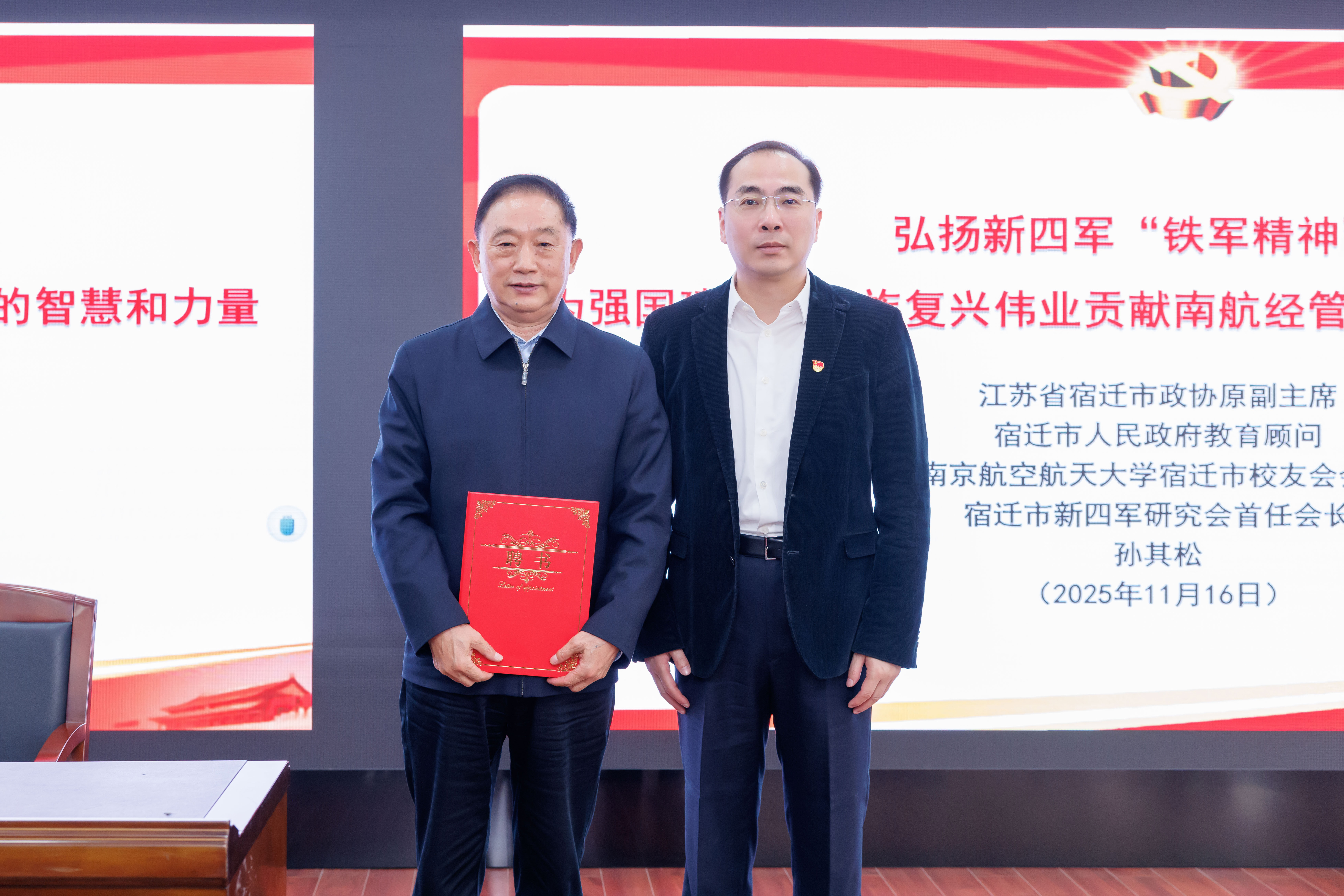 宿迁市原政协副主席、南航宿迁校友会会长、宿迁市新四军研究会原会长孙其松教授以“弘扬‘铁军精神’”为题,追溯新四军抗战历程,深入解读铁军精神的丰富内涵。他结合南航经管学科特色,勉励学员们传承“听党指挥、忠诚担当”的铁军基因,在专业领域深耕细作,为强国建设、世界一流经管学院建设贡献智慧与力量。