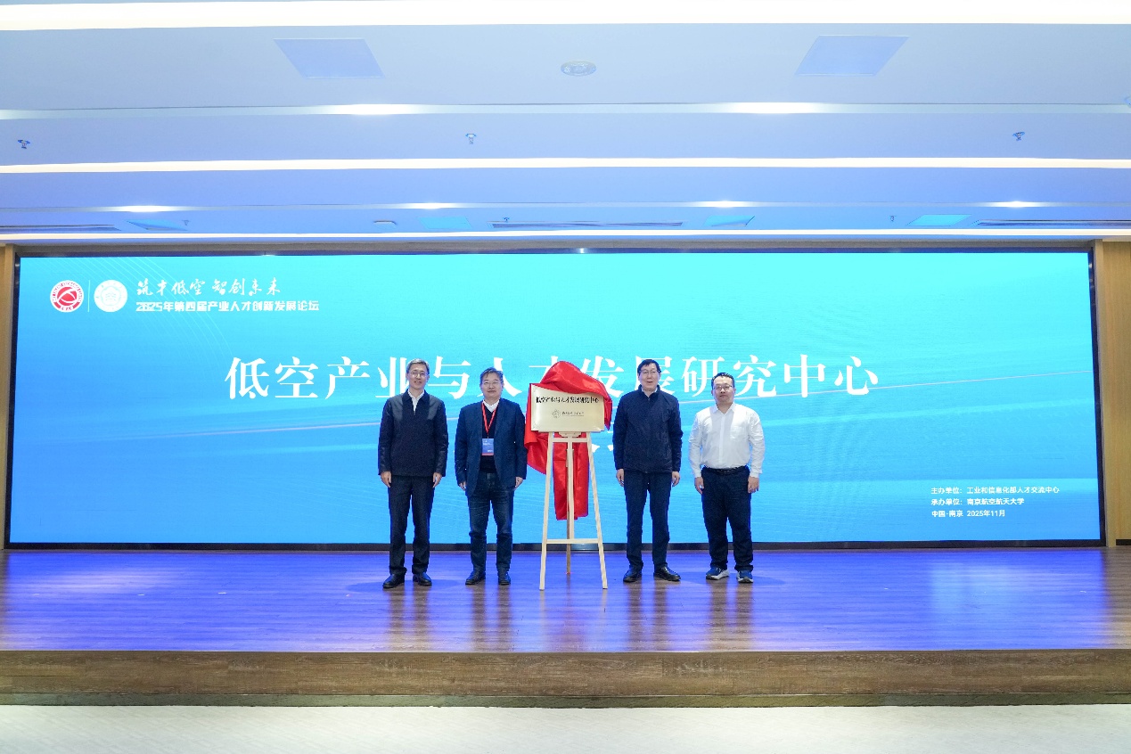 色云峰、马旸、余雷、吴启晖共同为“低空产业与人才发展研究中心”揭牌。该中心由南航发起成立,将聚焦低空领域战略规划研究、低空产业体系建设创新、低空专业人才培养与标准体系构建等,整合多方优势资源,推动创新成果转化与产业协同发展。工信部人才交流中心与南航还联合发布了《低空经济产业培训课程目录清单》。课程清单依托南航在低空领域全学科专业优势,系统规划了低空政策规范、低空装备研制、低空智联网络、低空运管服务、低空场景应用、低空人才培养、低空安全反制等七大培训模块,设计并遴选了100余门精品课程,为低空产业人才培养提供了一套逻辑清晰、系统全面、专业权威的培训课程体系。