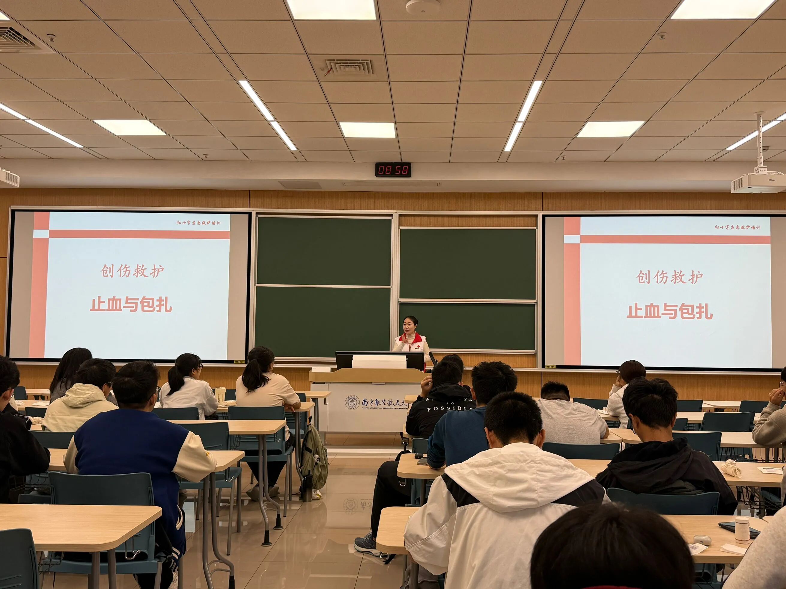 培训伊始,红十字会讲师首先向同学们介绍了红十字会的起源和基本情况。接着,在救护概论部分,讲师强调了现场救护的目的和原则,并重点讲解了如何保证安全、救护现场协作以及规范化的现场评估与施救流程,确保每一位学员都能在保障自身安全的前提下,科学、有效地实施救援。