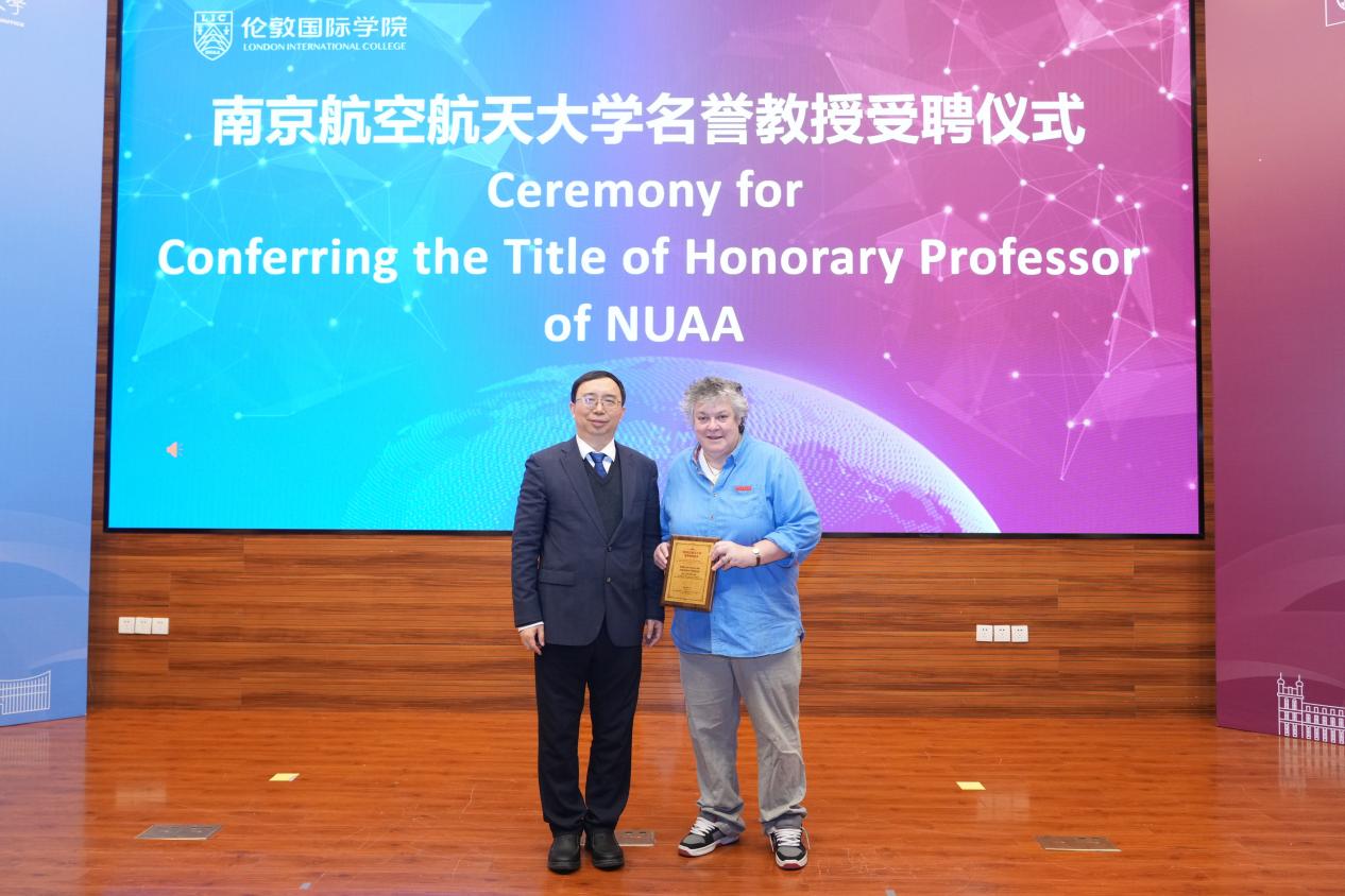 随后,双方校长上台,携手拉开帷幕,共同为南航伦敦国际学院揭牌。姜斌还为萨莉·维勒颁发了南京航空航天大学名誉教授聘书,为两校深化学术交流与合作筑牢了坚实纽带。