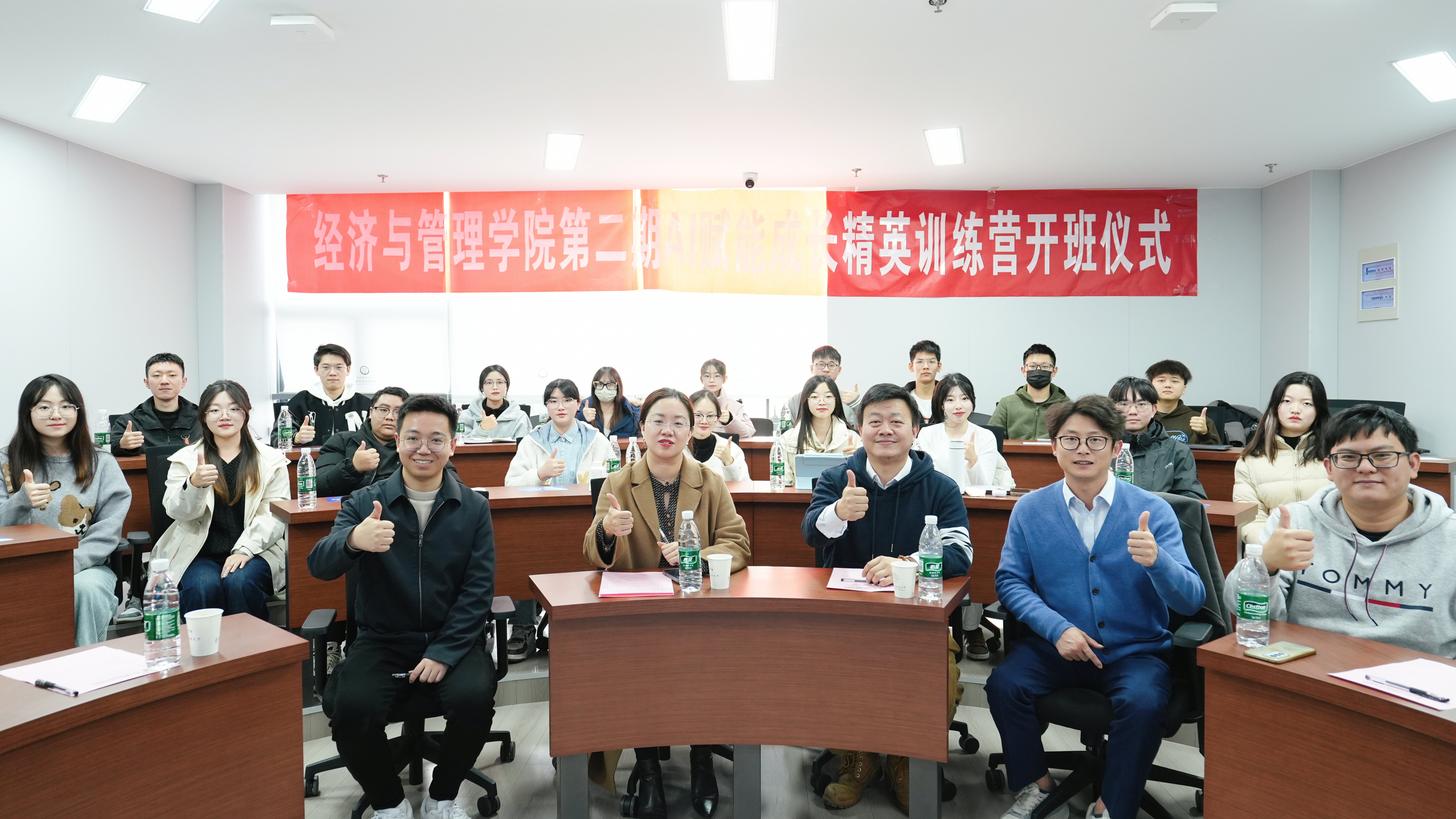 11月28日下午,经济与管理学院“第二期AI赋能成长精英训练营暨2026届职业训练营”开班仪式在学院辅楼A0306报告厅顺利举行。本期训练营延续“AI赋能+职业成长”双轨融合的培养模式,旨在帮助学生把握AI时代机遇,提升数字竞争力。南京新手村科技有限公司总经理石新洪、副总经理刘权震、江宁旅康项目负责人徐耀,经济与管理学院党委副书记胡苹,各年级辅导员及参训学生代表共同参与本次开班活动。活动由经济与管理学院毕业班辅导员张延波主持。