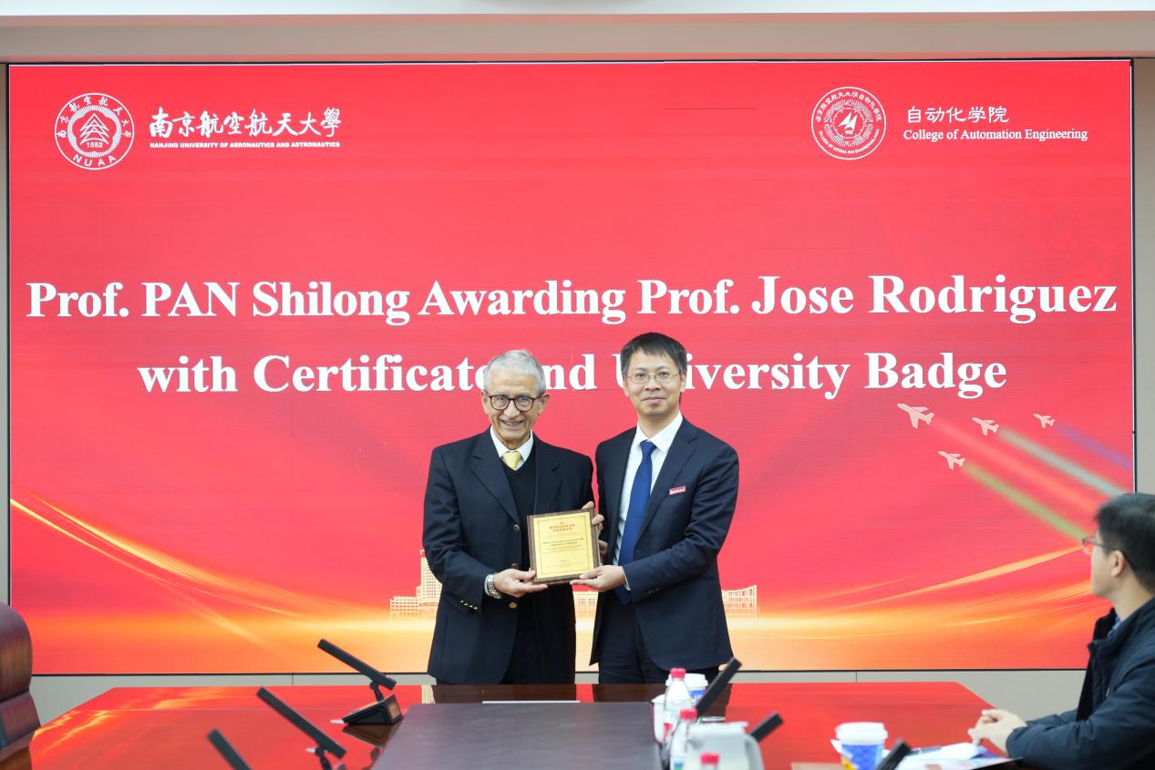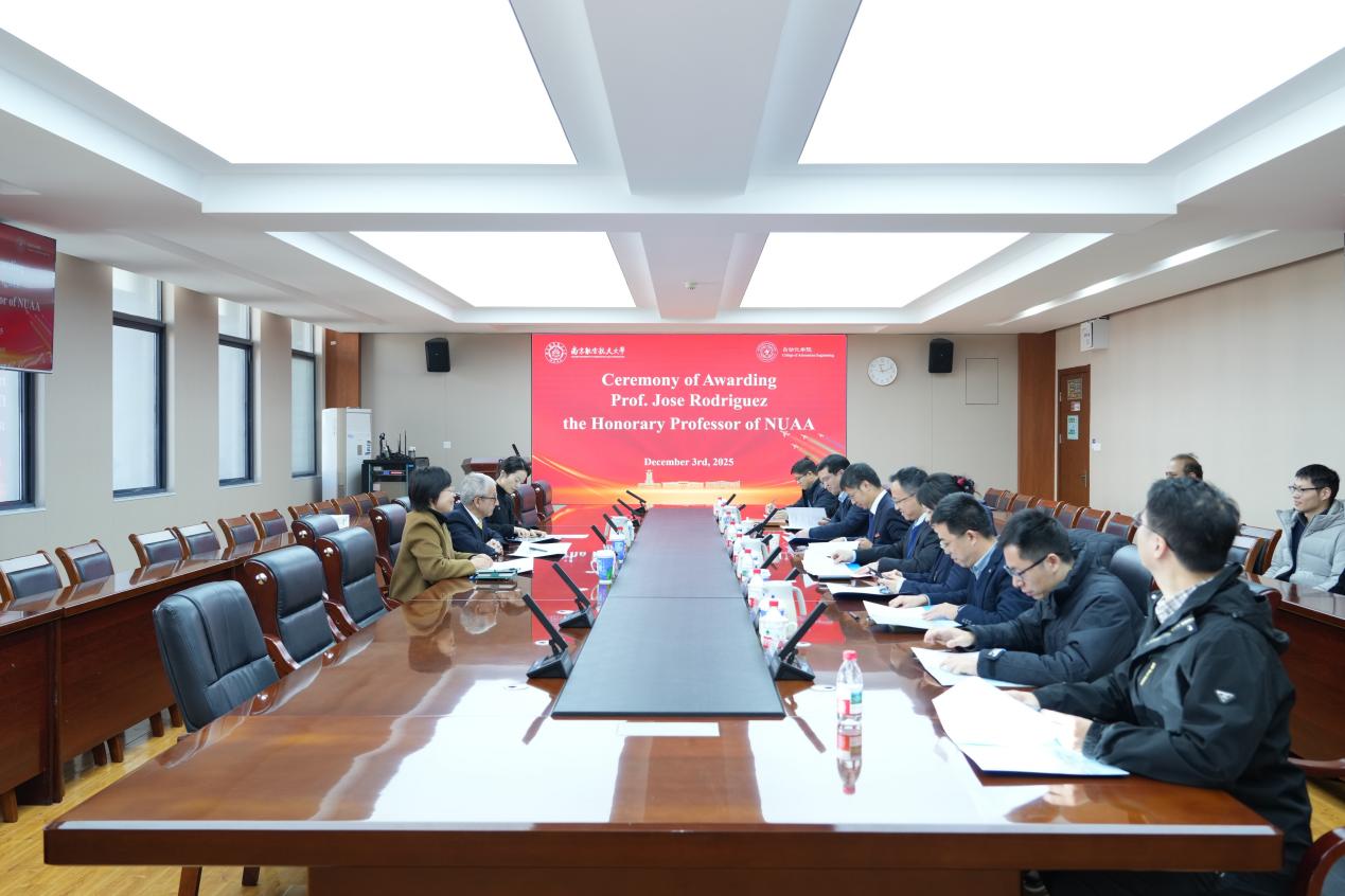 12月3日,智利工程院院士、智利圣塞瓦斯蒂安大学教授侯塞・罗德雷格兹受聘南京航空航天大学名誉教授仪式在将军路校区举行。校长助理潘时龙出席会议。仪式由自动化学院党委书记李文雷主持。
