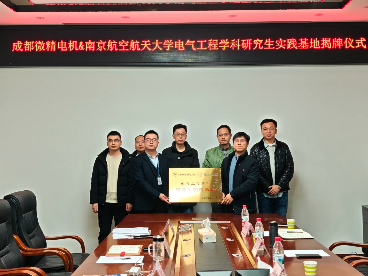 11月27日,我校团队赴成都微精电机股份公司举行交流座谈以及南京航空航天大学电气工程学科研究生实践基地揭牌仪式,成都微精电机公司党委书记、总经理石利俊及相关负责人和我校电气工程系副主任卜飞飞教授和阳辉教授共同参与。双方均表示共建研究生实践基地是双方深化合作的良好开端,并希望以此为契机,推动双方在项目申报、实验室共建和人才培养等领域开展更深入合作。