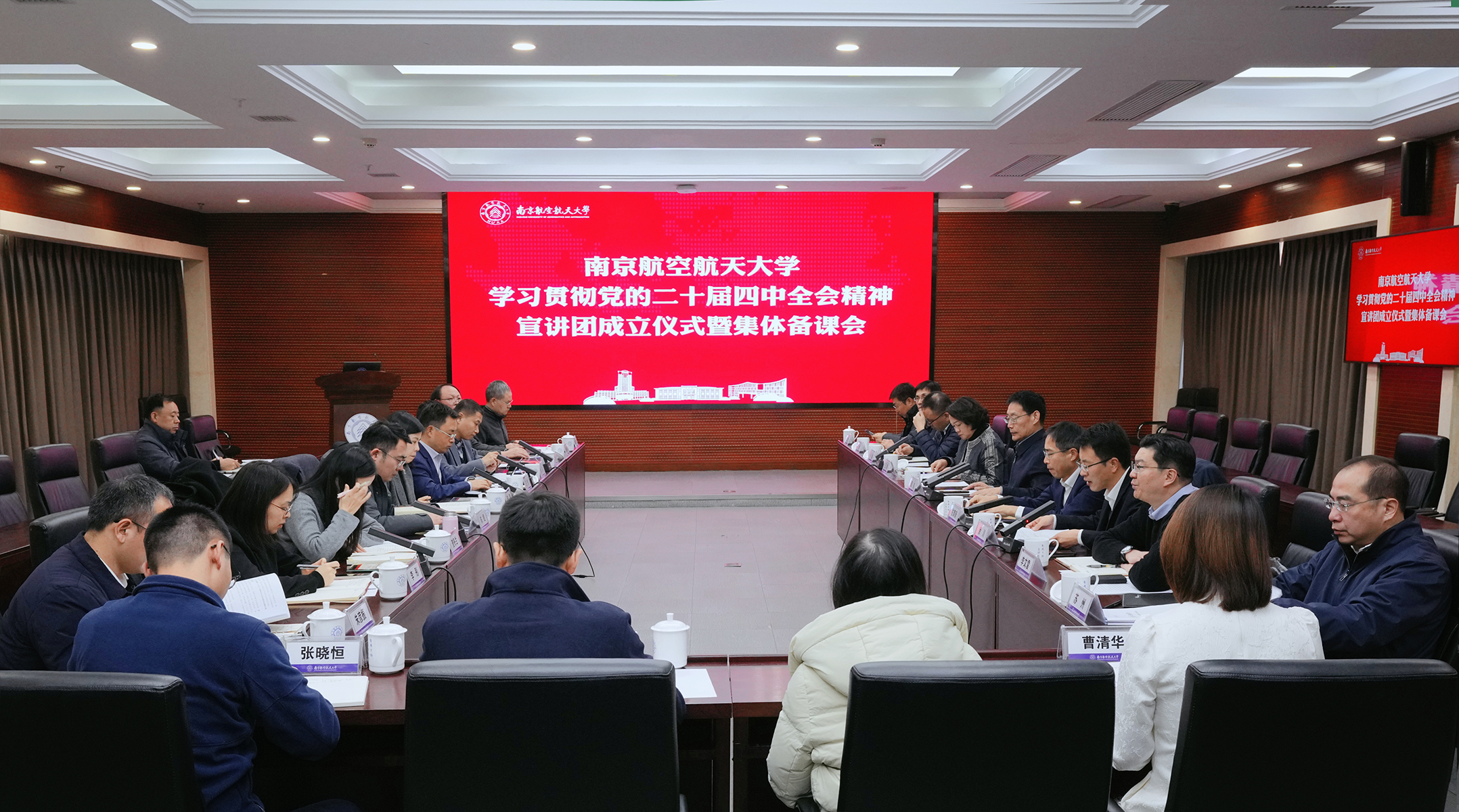 航空学院、自动化学院、机电学院、经济与管理学院、人文与社会科学学院党委主要负责同志,学习贯彻党的二十届四中全会精神校内宣讲团成员参加会议。