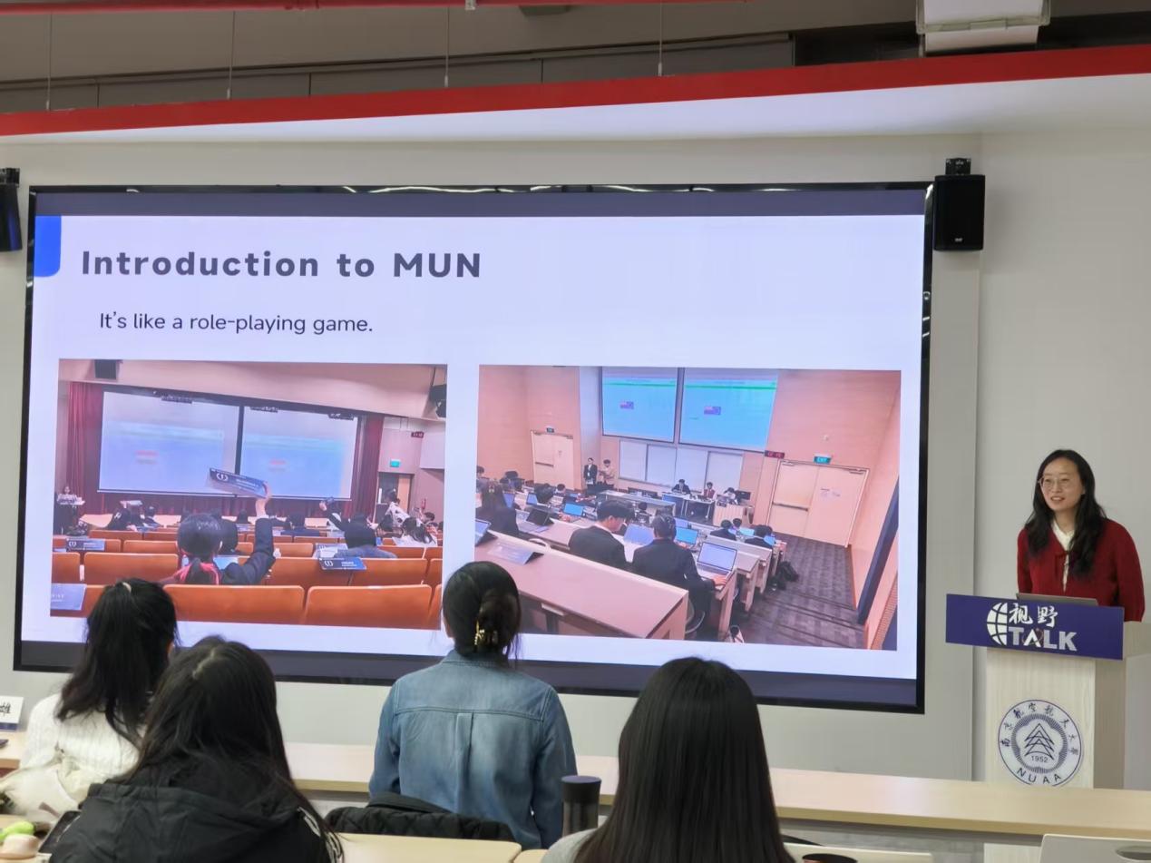 分享会伊始,牛晓然带领听众走进了模联的世界。她从基础知识入门,逐步解密了团队备战牛津模联这场国际赛事的完整过程与精心准备。