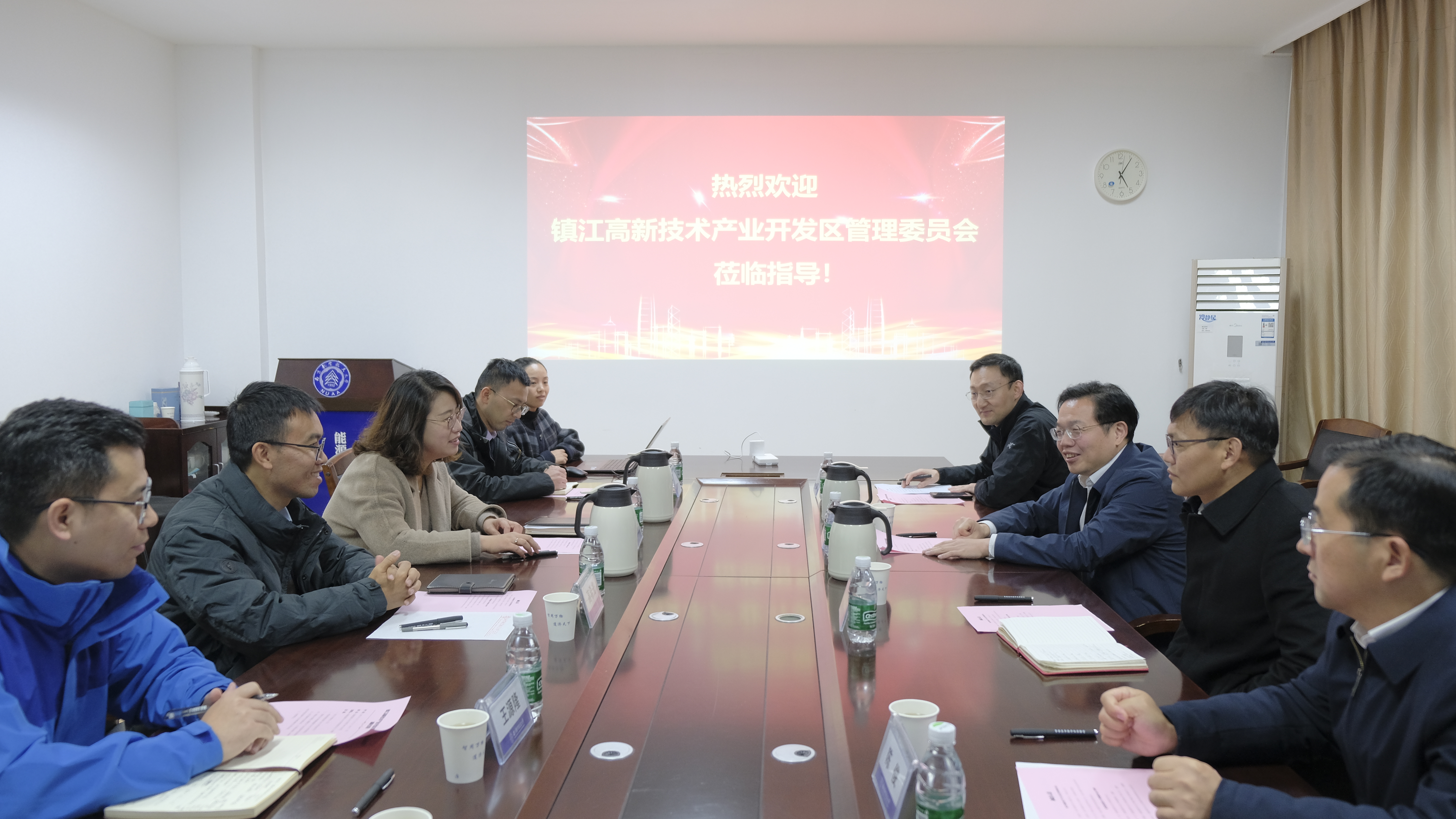 12月3日,镇江高新技术产业开发区党工委副书记、管委会主任陈秋明、高新区党工委委员、科技镇长团团长崔祥民,润州工业园区管委会主任、高新区科技发展局局长陈俊,以及高新区科技发展局副局长吴詹俊一行来能源与动力学院调研。学院党委书记许静、副院长高希光及相关系主任、机关人员参与调研座谈,座谈会由许静主持。