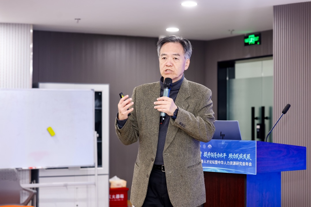 中国人才研究会副会长、北京大学人力资源开发与管理研究中心创始主任萧鸣政教授代表主办方致辞,并作题为《全面提高干部队伍现代化建设本领》的首场主旨报告。他指出,他强调,面对新形势新任务,必须将干部队伍能力建设摆在突出位置,面对中国式现代化的七大特征与党的二十大及二十届四中全会对干部能力的新要求,必须系统构建干部现代化建设本领的内涵与结构模型,并从管理过程、内容维度与实践需要等多方面出发,全面设计提升路径。