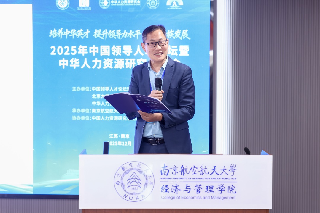 为深入探讨新时代领导人才培养与人力资源发展路径,12月6日,2025中国领导人才论坛暨中华人力资源研究会年会在南京航空航天大学举行。本届论坛以“培养中华英才、提升领导力水平、助力民族发展”为主题,由中国领导人才论坛理事会、北京大学人力资源开发与管理研究中心、中华人力资源研究会共同主办,南京航空航天大学经济与管理学院承办。来自两岸三地的高校、研究机构及行业企业的80余位专家学者与业界代表齐聚一堂,共商领导力与人才发展大计,开幕式由南京航空航天大学经济与管理学院党委书记苏州主持。