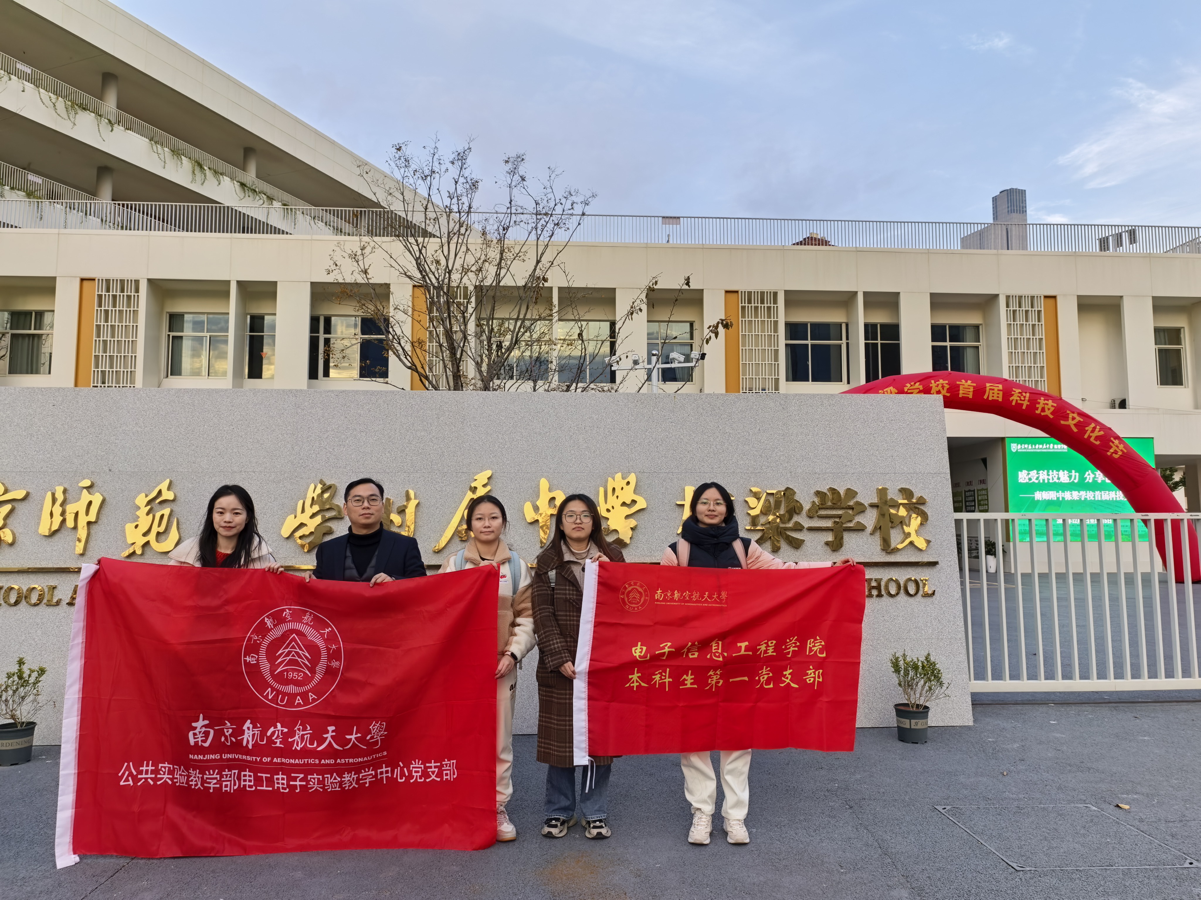 12月4日,公共实验教学部电工电子实验教学中心党支部,与电子信息工程学院本科生第一党支部联合组建志愿服务队,走进南京师范大学附属中学栋梁学校,以“感受科技魅力 分享创意生活”为主题,为该校初中生带来了一场生动有趣的电子焊接体验活动,受到师生们的热烈欢迎。