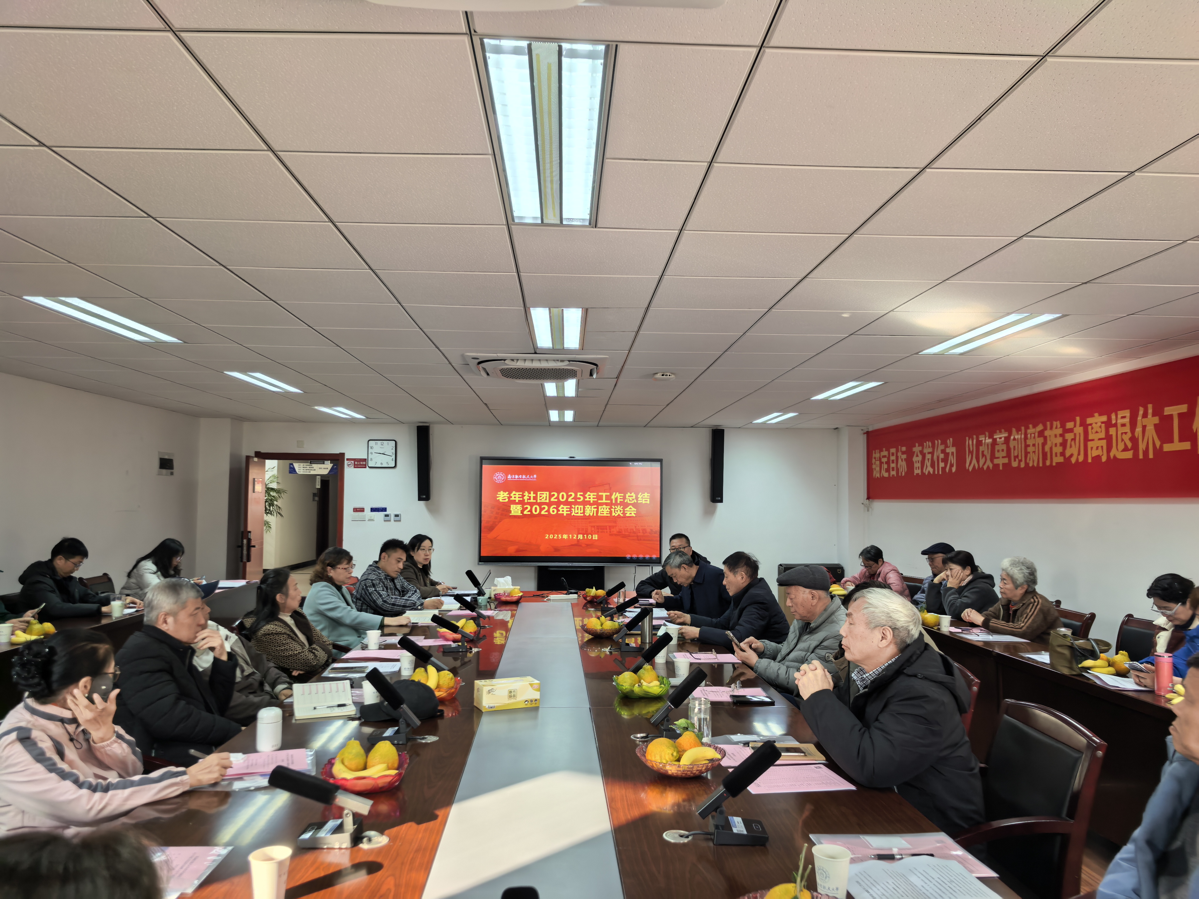 12月10日,南京航空航天大学老年社团 2025 年工作总结暨 2026 年迎新座谈会圆满举行。我校关工委、老年大学、老年体育协会、夕阳红艺术团、老科技工作者协会等老年社团组织负责人、社团下设各协会负责人,以及离退休处全体工作人员欢聚一堂,回顾2025年硕果累累的发展过程,共绘2026年老有所为、老有所乐的发展蓝图。会议由离退休处副处长李洁主持。