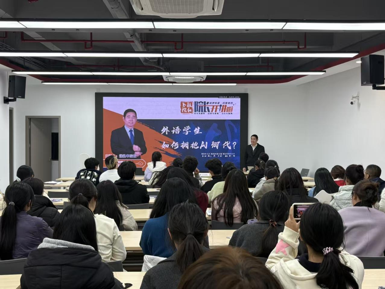 12月11日,外国语学院联合致和书院成功举办“院长开讲啦”主题讲座。外国语学院院长徐以中教授应邀担任主讲嘉宾,以“AI时代外语学生的发展路径与未来方位”为题,为在场师生带来一场内容扎实、视角前沿的分享,现场气氛热烈,同学们踊跃提问,收获颇丰。