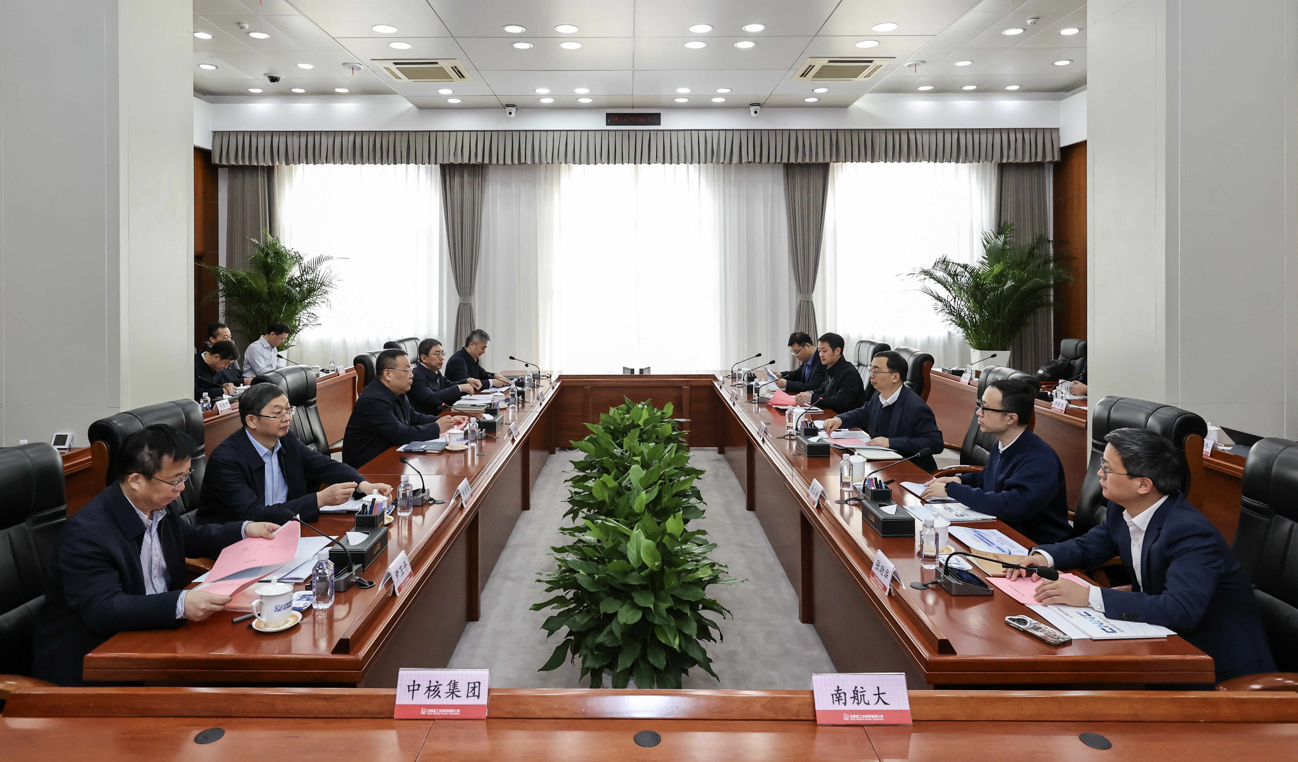 申彦锋对姜斌一行到访表示诚挚欢迎,对南京航空航天大学在科研合作、人才培养等方面给予中核集团的关注与支持表示感谢,并简要介绍了集团总体情况和发展战略。他表示,中核集团积极融入长三角一体化发展,在江苏省的产业布局持续深化,为与南京航空航天大学深化合作奠定了坚实基础。未来希望双方充分发挥区域产业与科教资源优势,依托集团在苏单位需求,高效开展校企协同,在学术交流、专业发展、技术攻关等方面加强务实合作,共同培养适应行业发展需求的高层次人才,以高质量人才队伍建设支撑核工业强国建设。