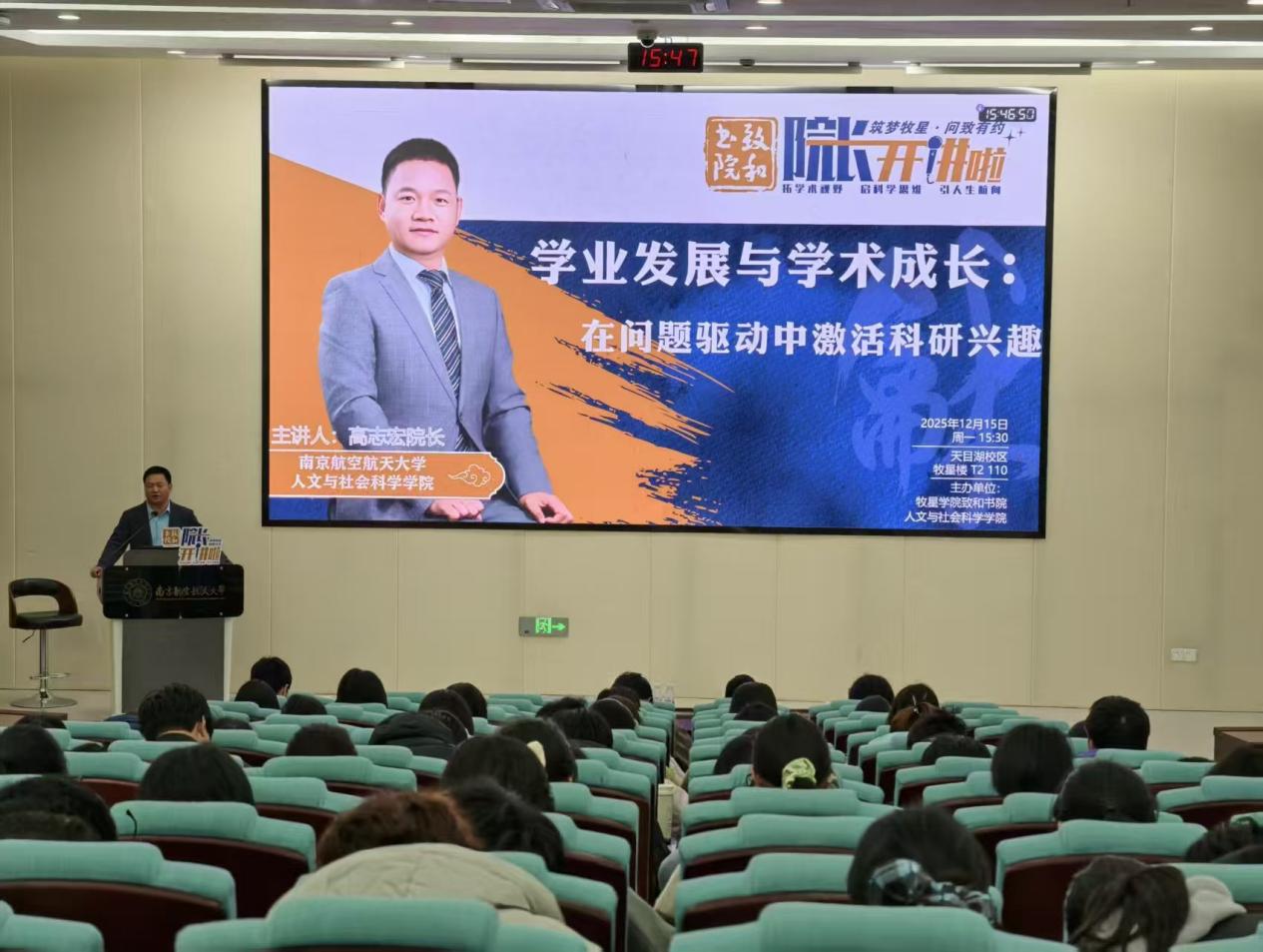 12月15日,人文与社会科学学院协同致和书院成功举办“院长开讲啦”主题讲座。人文学院院长高志宏教授聚焦学术核心能力培养,以《学业发展与学术成长:在问题驱动中激活科研兴趣》为题,结合生动案例与学科特色,为现场同学指明从本科阶段迈向学术研究的清晰路径,带来一场富有启发性的思想交流。