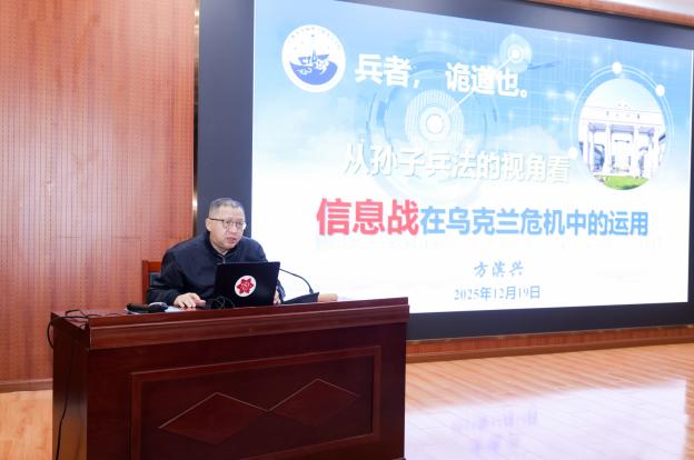 方滨兴院士作题为《从孙子兵法视角看信息战在乌克兰危机中的运用》的学术报告。报告系统阐释了网络空间安全的“三维九空间”理论体系,并重点解析了“风险维”中的“作用空间”。结合乌克兰危机中的具体实例,方院士详细剖析了设施战、网络战、情报战与认知战等信息战形式的实践表现。整场报告理论深刻,紧密联系实际,为师生提供了前沿的学术视角。