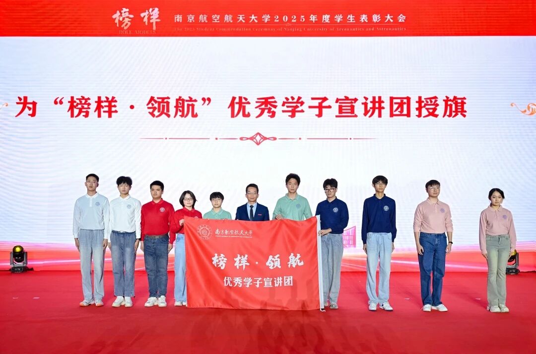师生代表通过“青春砺剑,以家国情怀涵养强国之志”、“团结共进,以过硬本领锤炼强国之技”和“锐意创新,以挺膺担当勇建强国之功”三个篇章,生动讲述个人与团队将青春梦想熔铸于强国事业的奋斗历程。随后,2025年度在德智体美劳各方面表现突出的团队与学生代表分享了他们的成长故事。从深耕专业到文体兼修,从创新实践到志愿服务,他们在各自领域全面开花,以脚踏实地的耕耘、敢闯敢试的锐气和众行致远的团结,展现了南航学子爱党爱国、自立自强、奋发向上的青春风采,诠释了新时代青年将个人成长融入祖国发展的使命与担当。