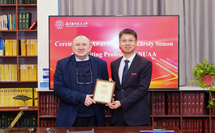 17日上午,学院首先为匈牙利科学院通讯院士、布达佩斯技术与经济大学教授卡洛伊·西蒙隆重举行客座教授聘任仪式。校长助理潘时龙,国际化部部长赖际舟,数学学院党委书记张跃、院长王春武、副院长徐江,国际合作处副处长徐智鑫,及相关师生代表参加仪式。仪式由王春武主持。赖际舟向与会人员介绍卡洛伊·西蒙教授的基本情况,包括教育背景、学术成就及两校的合作基础与成果。潘时龙代表学校为卡洛伊·西蒙教授颁发客座教授聘书,并为其佩戴校徽。卡洛伊·西蒙教授对受聘为南航客座教授表达了诚挚的感谢,并表示将继续推动BME与南航开展更深层次合作,助力两校在前沿科技领域实现协同创新。