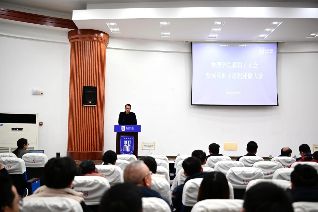 此次会议既是工作总结会、述职述廉会,也是凝聚共识、谋划发展的动员会,学院全体教职工将以此为契机,进一步明确工作方向,凝聚发展合力,在今后的工作中携手并肩、锐意进取,共同推动物理学院各项事业取得新成效,为学校“双一流”建设和教育强国战略实施作出更大贡献。