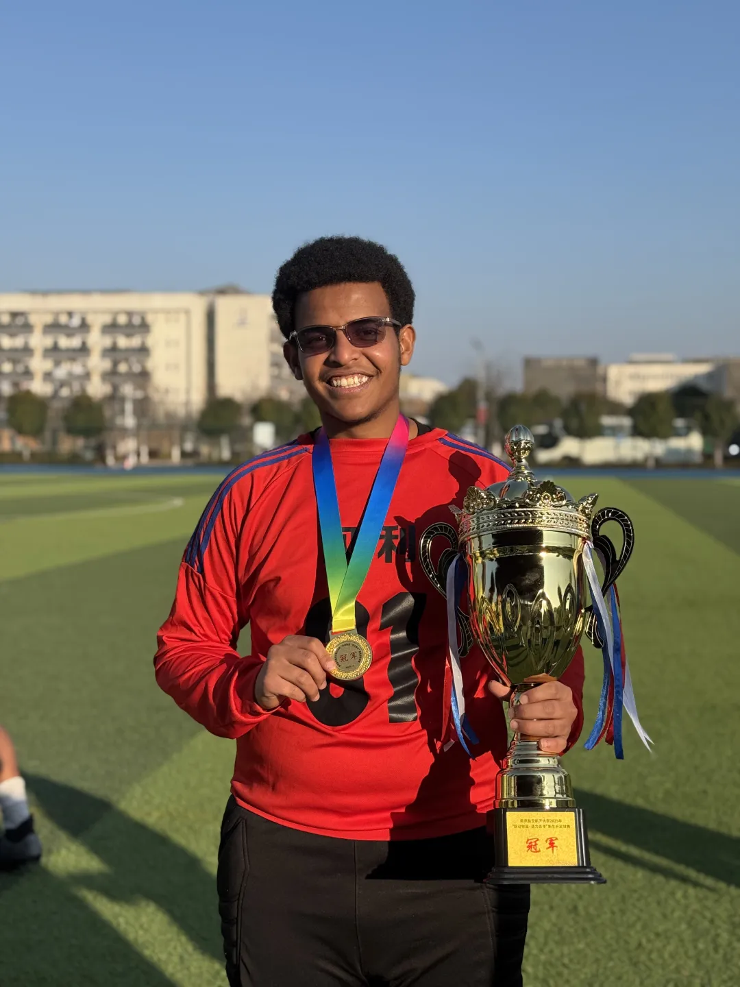 12月28日下午,决赛在天目湖校区西操场正式开赛。赛前,双方运动员积极开展热身训练,做好万全准备;现场观众热情高涨,助威声、呐喊声此起彼伏,赛场氛围热烈浓厚。随着哨声响起,两支队伍迅速进入状态,攻防转换节奏明快,精彩射门、默契传球接连上演,为现场观众呈现了一场高水平的足球盛宴。最终,国际教育学院凭借出色的团队协作与临场发挥夺得冠军,致元书院斩获亚军。此外,国际教育学院31号球员贝利因在赛事中表现突出,荣膺“金球奖。